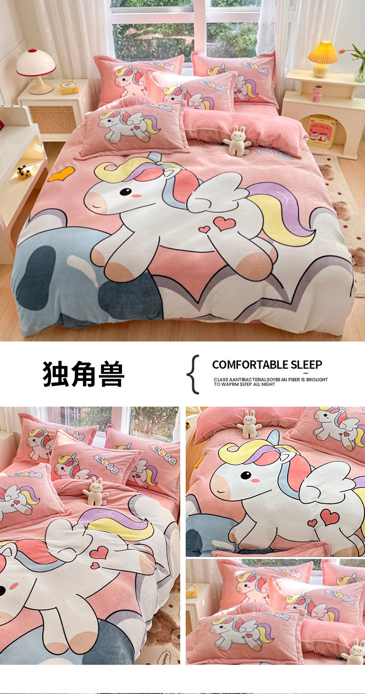 喜梦缘 2025新款大版卡通牛奶绒印花四件套 独角兽