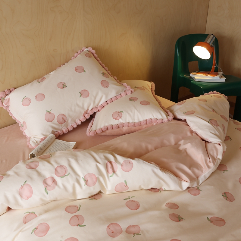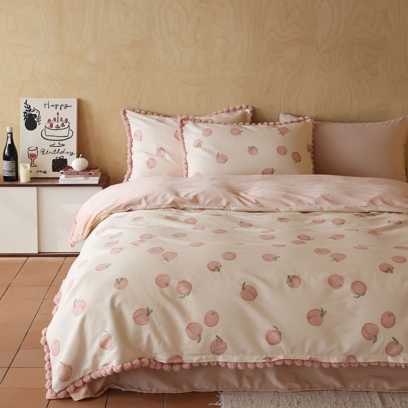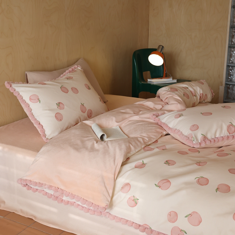 当前位置: 91家纺网 > 商品网购 > 床品套件 > 四件套 > 全棉普通四件套 > 棉眠 2024新款AB版毛球款棉加绒四件套 甜桃(棉加绒)