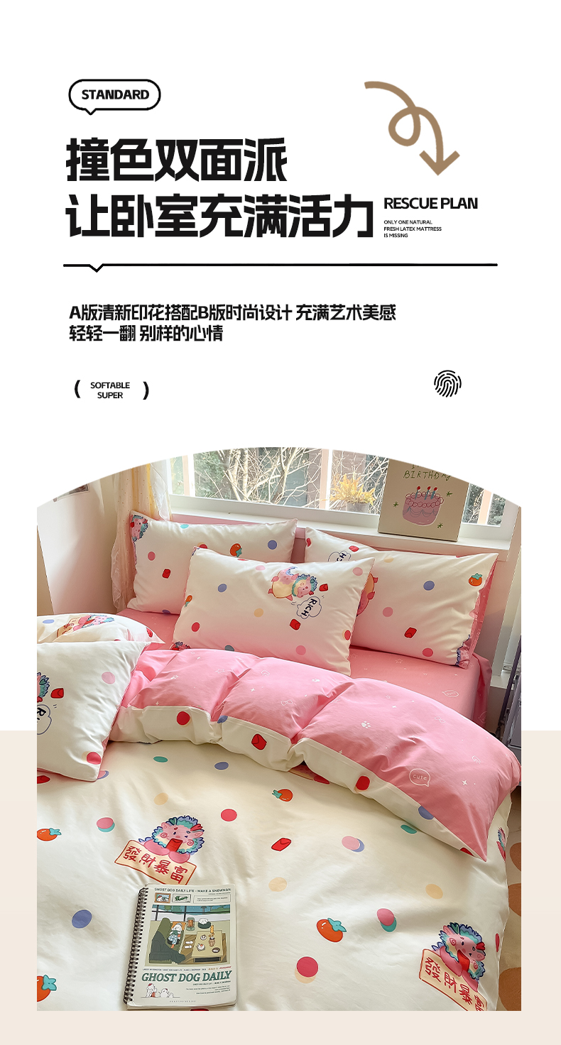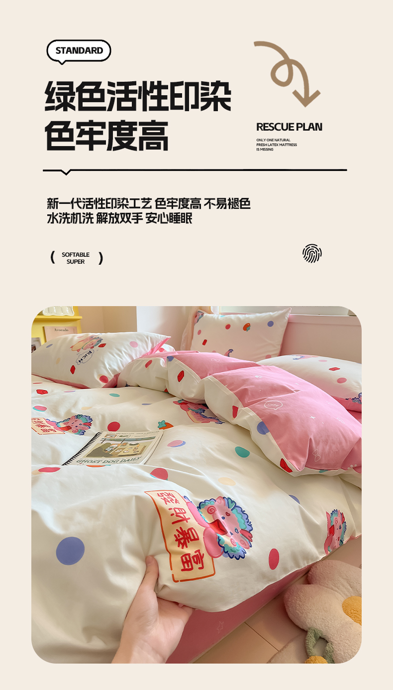 (总)雅居纺家纺 2026新款全棉小清新印花四件套,HI小狗,暴富,草莓蓝花,粉色熊熊,红红火火,简笔画小兔,蓝条花朵兔,绿色小兔,森林乐园,绅士快乐狗,贪睡猫猫,贪玩家族,贪玩小兔兔,祥瑞,小黑猫咪,幸福花朵,幸福兔-蓝,熊熊小汽车,紫色千鸟格
