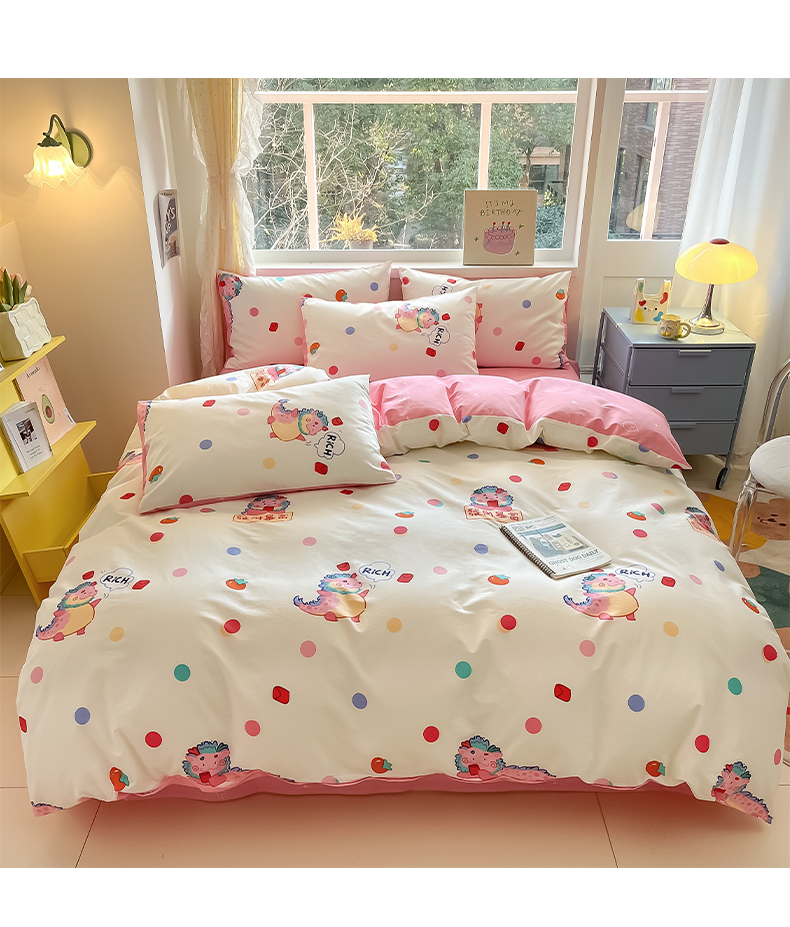 (总)雅居纺家纺 2022新款13070全棉印花四件套,草莓蝴蝶结,俄罗斯方块,黑白蝴蝶结,很嗨兔,可爱小兔,快乐花海,牛奶纹,胖胖鸭,棋盘格,日月争辉,西部恐龙,小情调,小桃桃