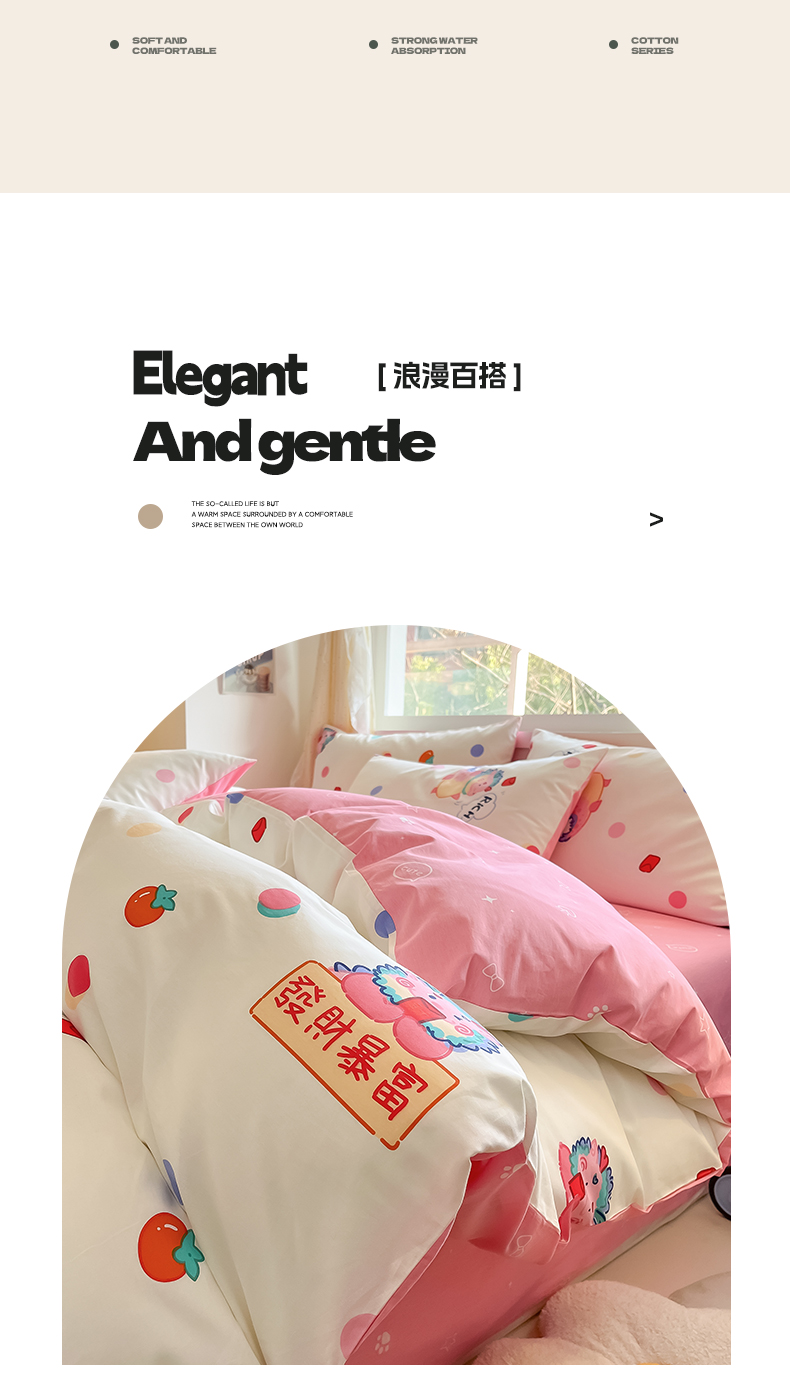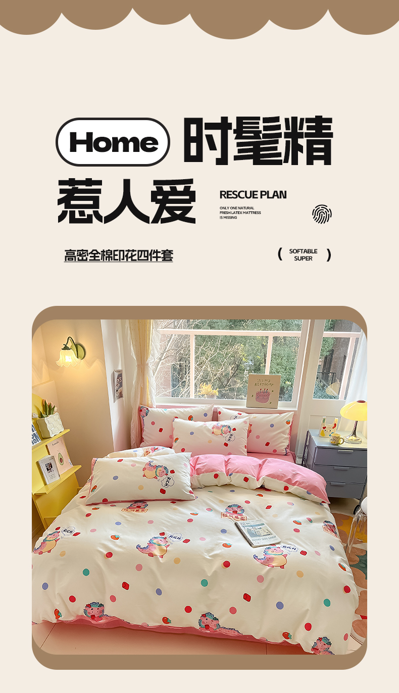 (总)雅居纺家纺 2022新款13070全棉印花四件套,波纹,多彩,简笔画,莓关系,奶油绿豹纹,倾心,数字