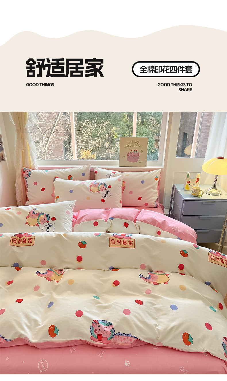 雅居纺 2024新款高密全棉13070印花四件套 发财暴富