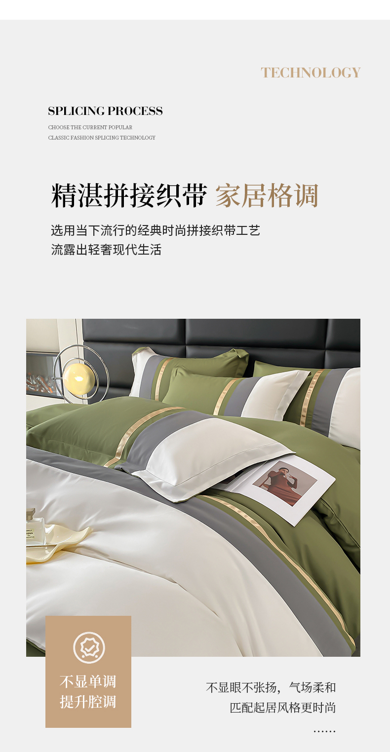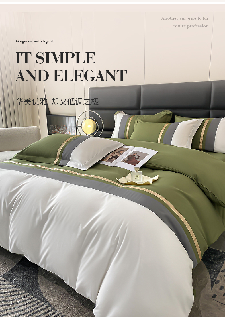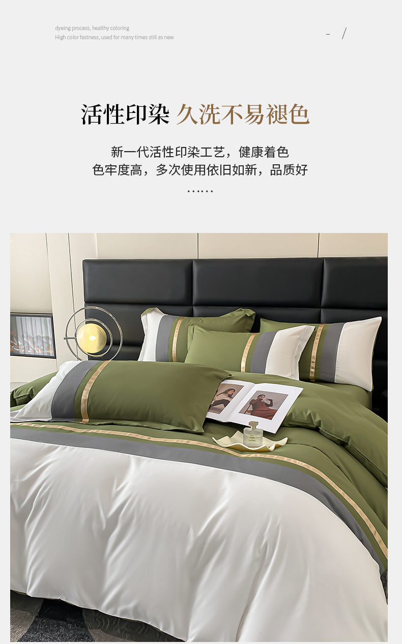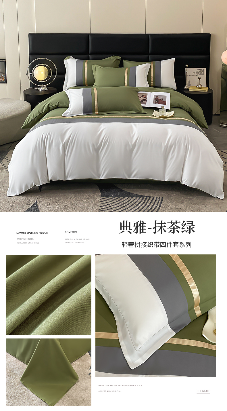 商品名称:苏源家居 2024新款亲肤棉纯色双拼轻奢北欧四件套-典雅系列 典雅-抹茶绿