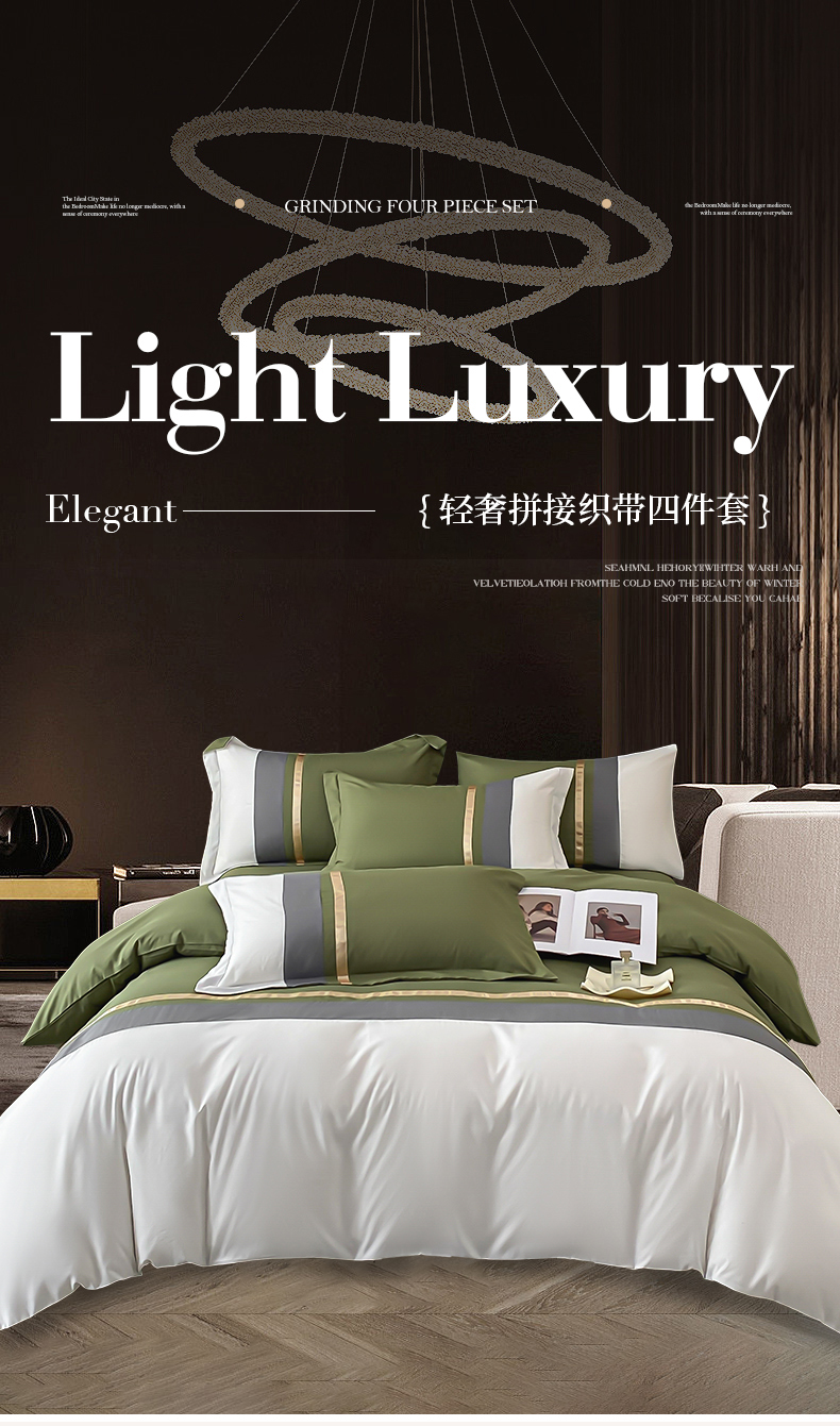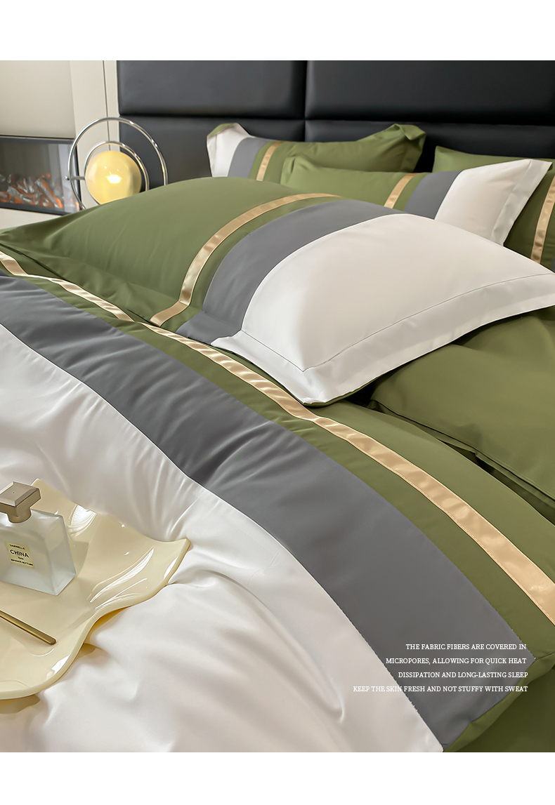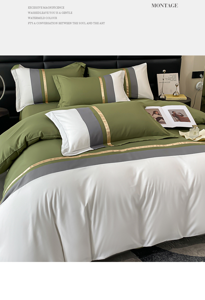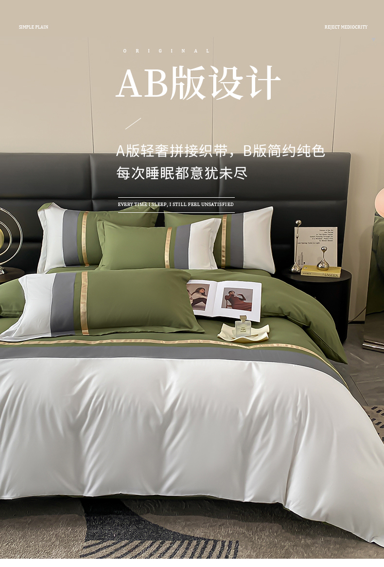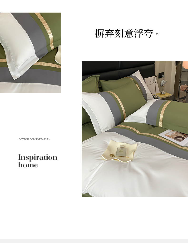 商品名称:苏源家居 2024新款亲肤棉纯色双拼轻奢北欧四件套-典雅系列 典雅-抹茶绿
