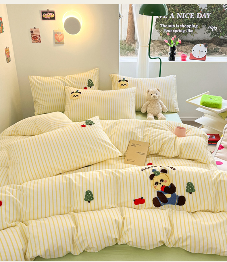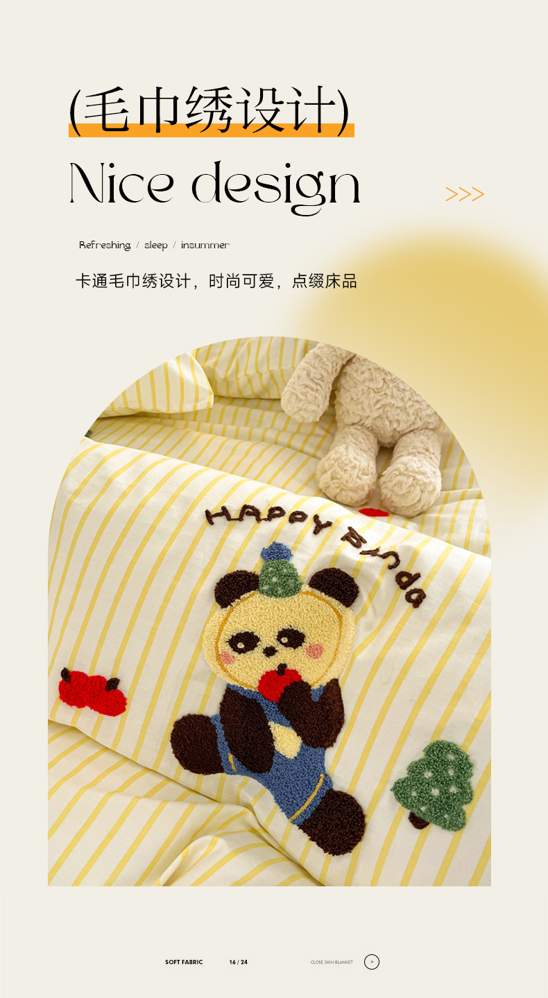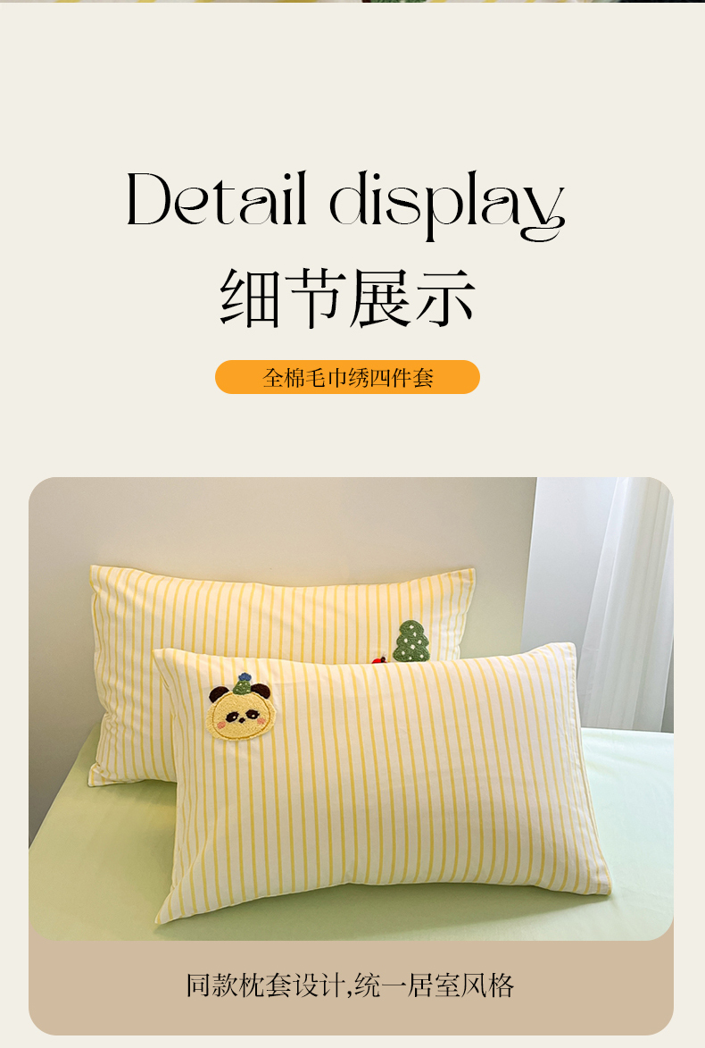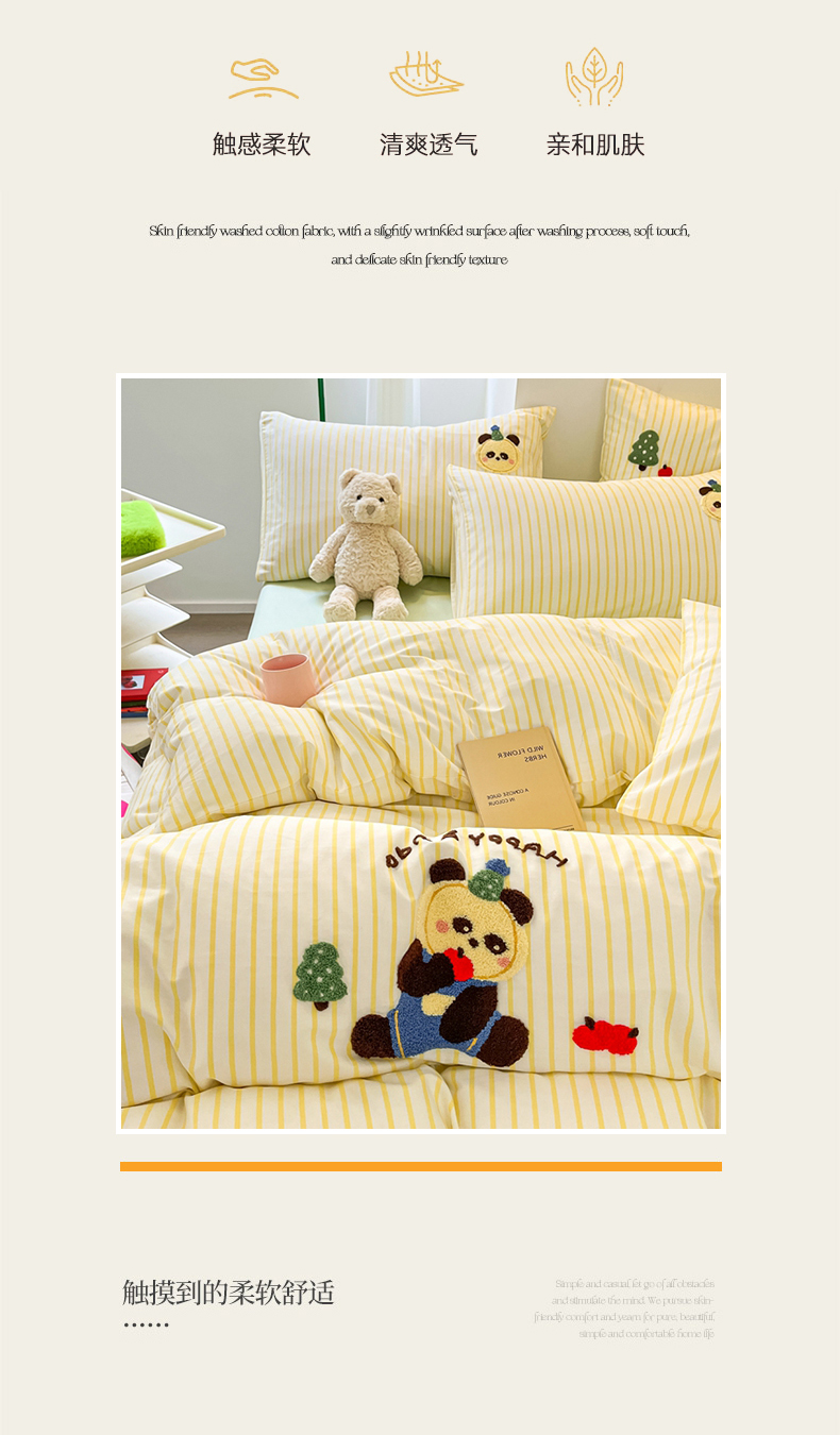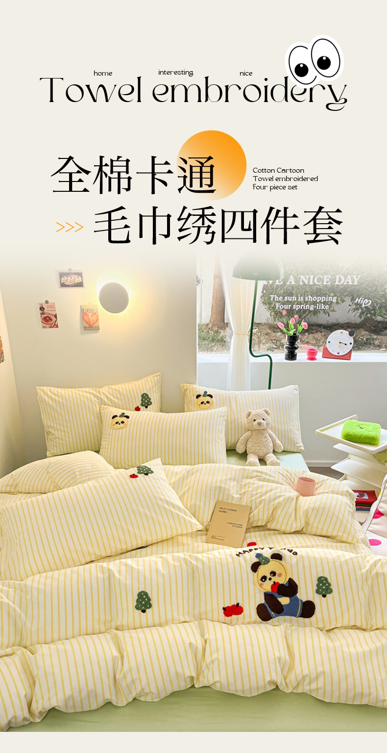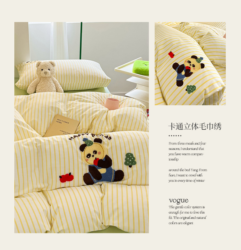商品名称:呗旺鹿 2024新款全棉13372毛巾绣四件套 苹果熊猫