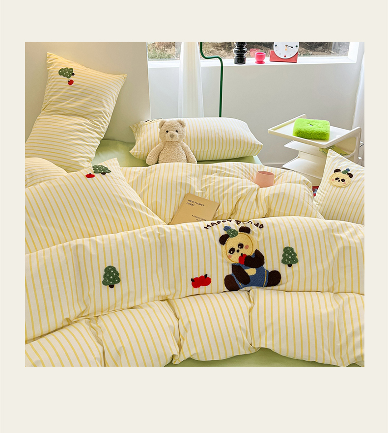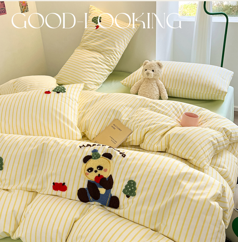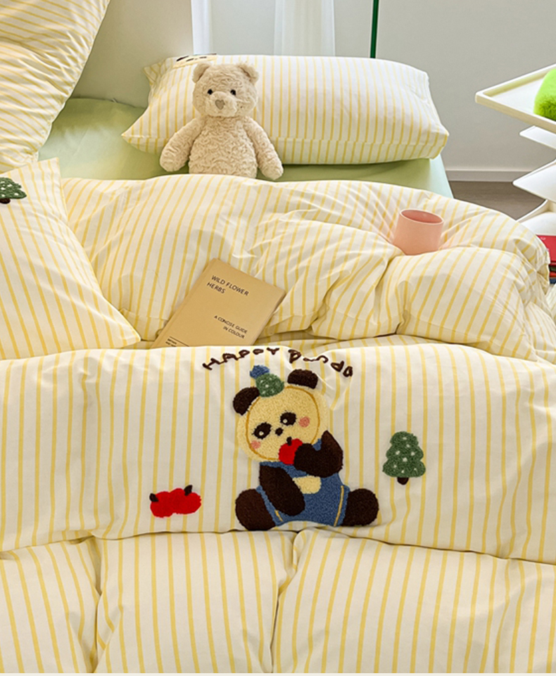呗旺鹿 2024新款全棉13372毛巾绣四件套 苹果熊猫
