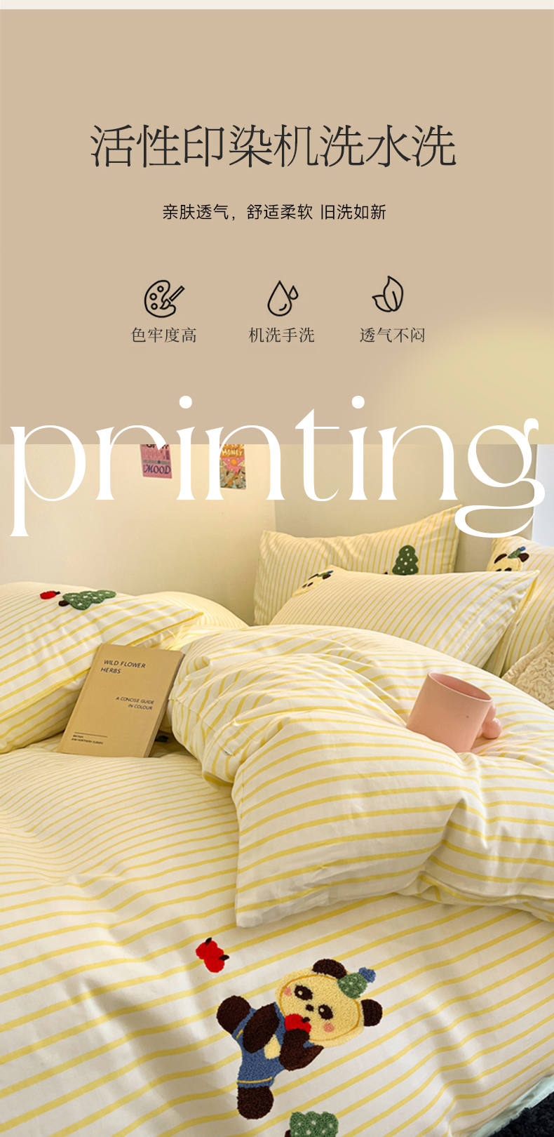 (总)呗旺鹿 2025新款全棉纯棉磨毛休闲布达拉宫贝壳边四件套-场景二,布达拉宫