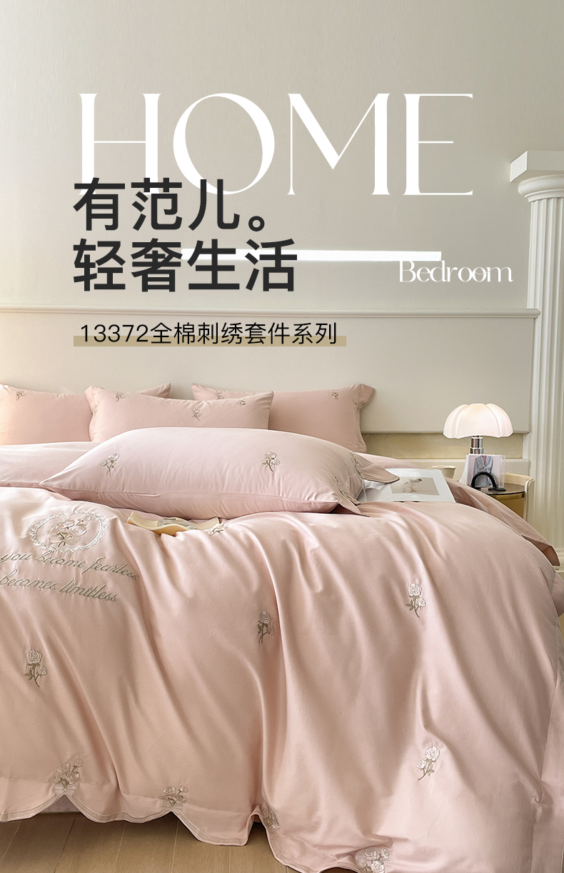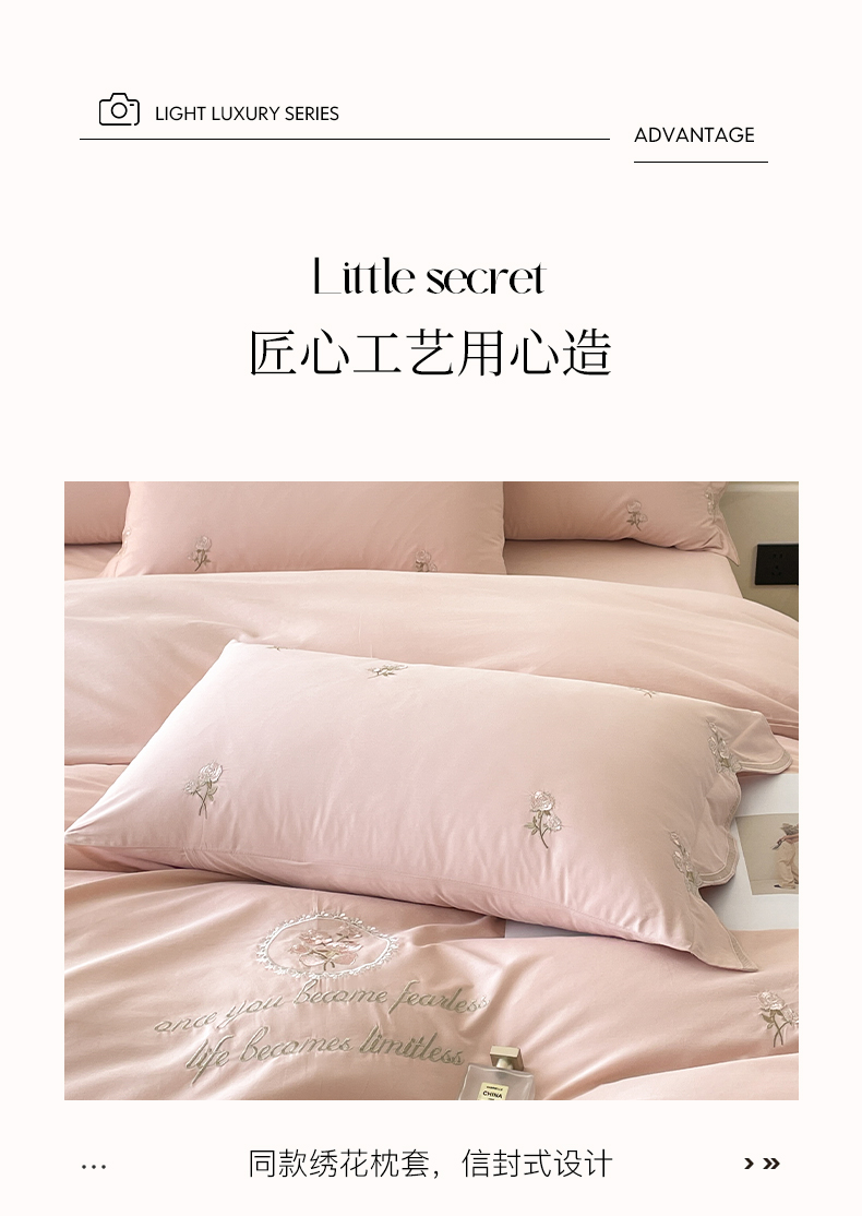理想家家纺 2024新款全棉刺绣13372四件套-罗拉 罗拉粉