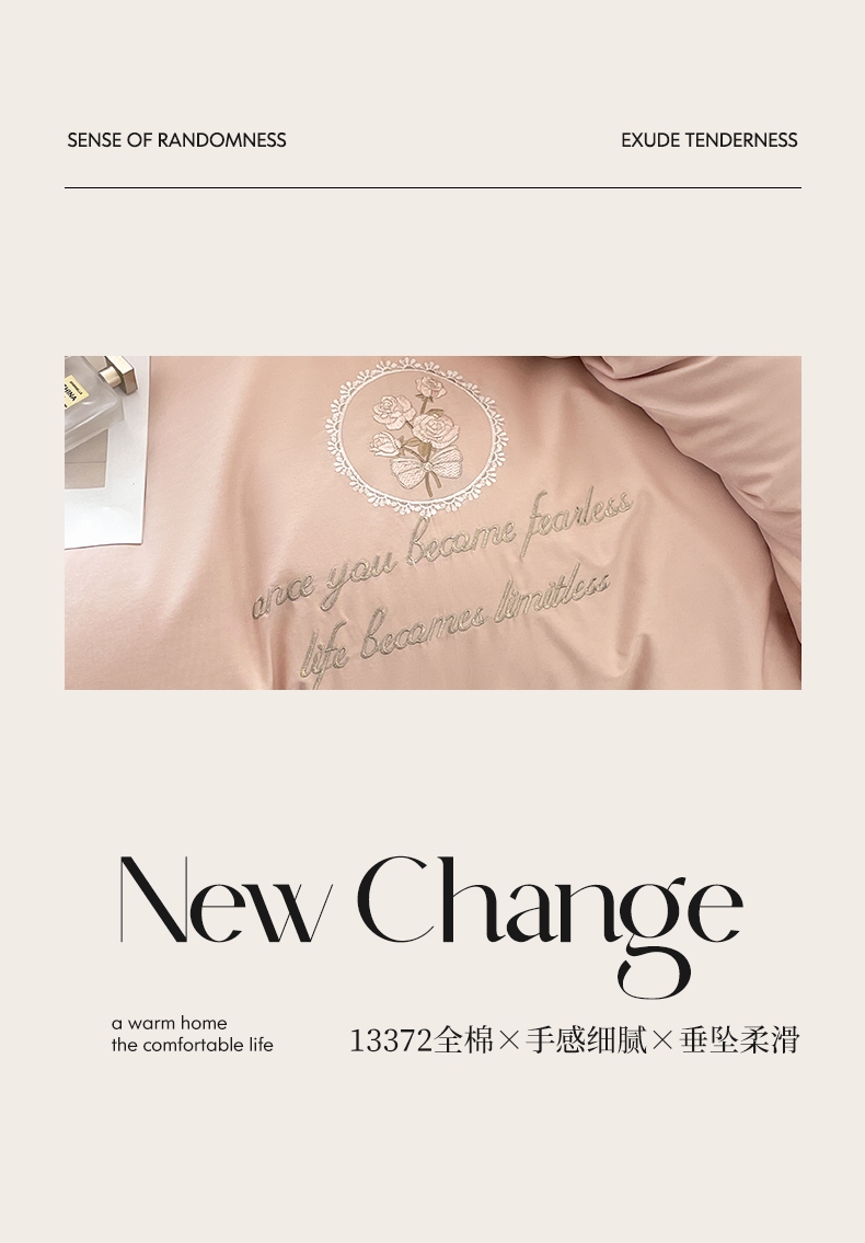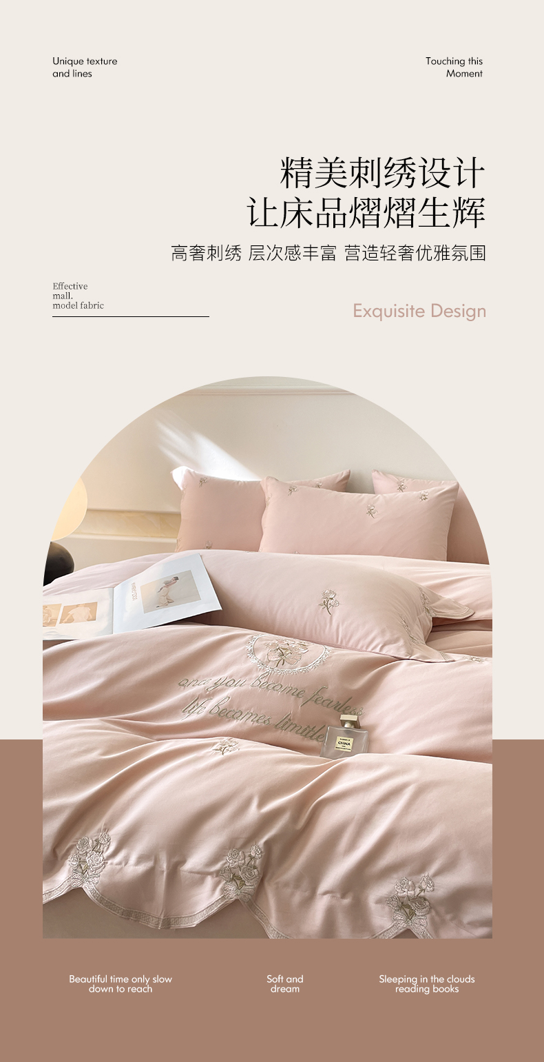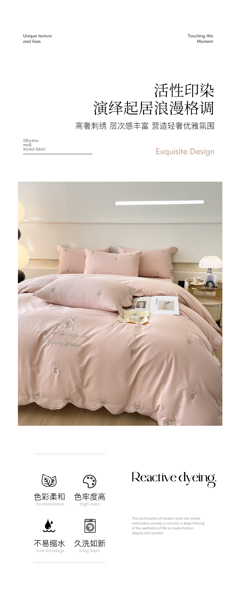 商品名称:理想家家纺 2024新款全棉刺绣13372四件套-罗拉 罗拉粉