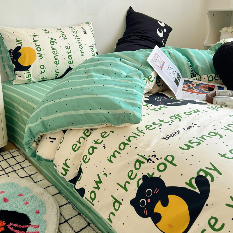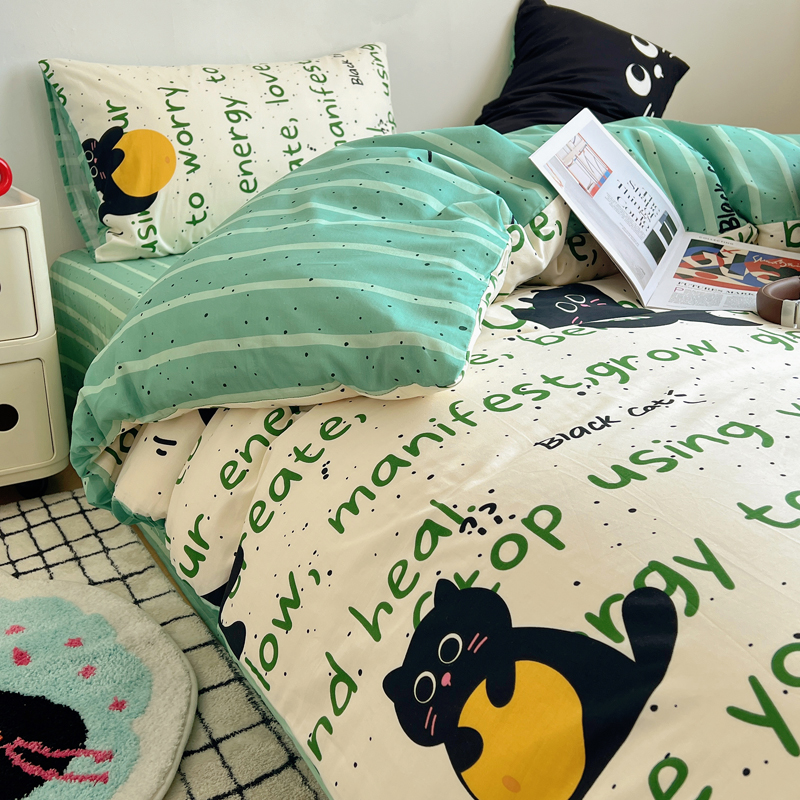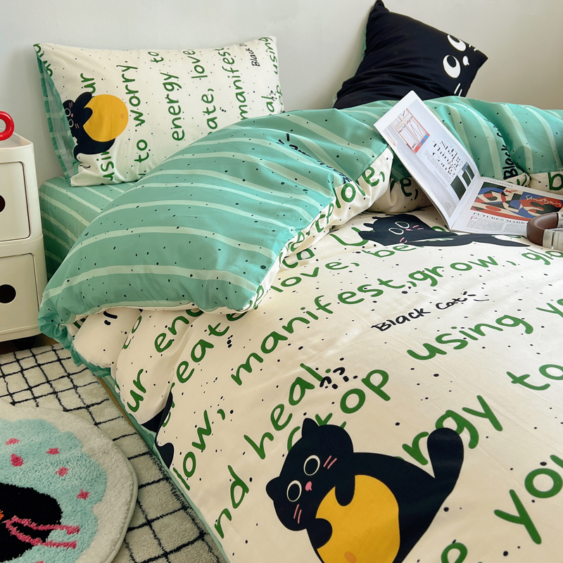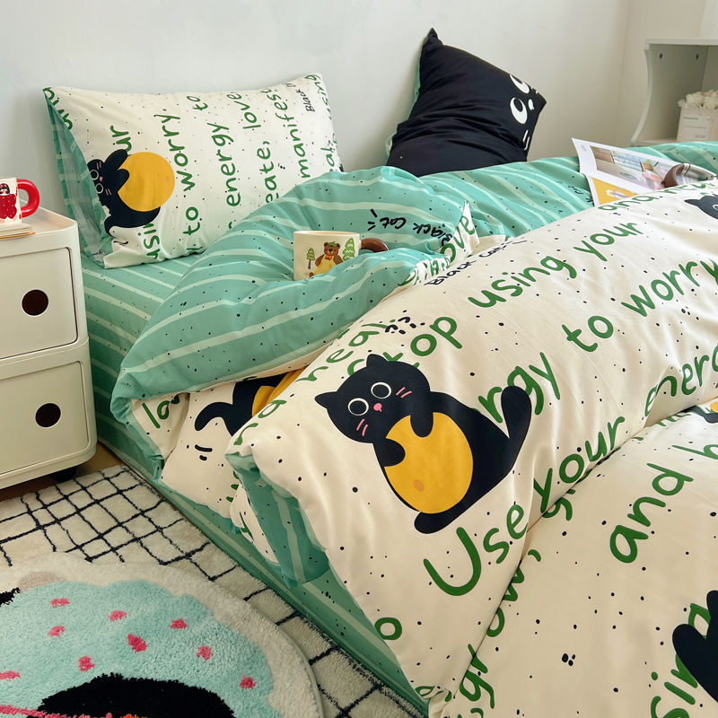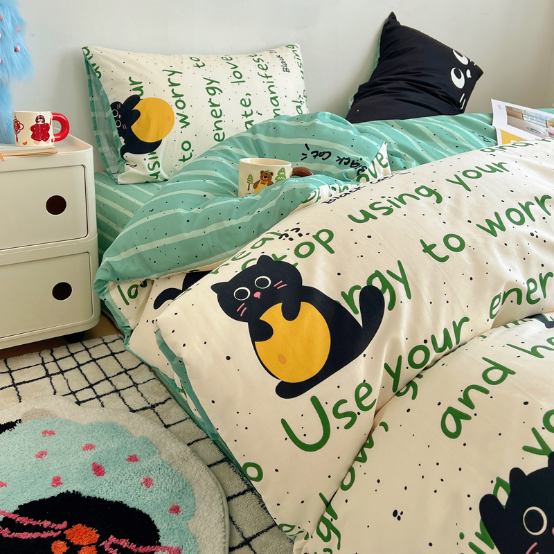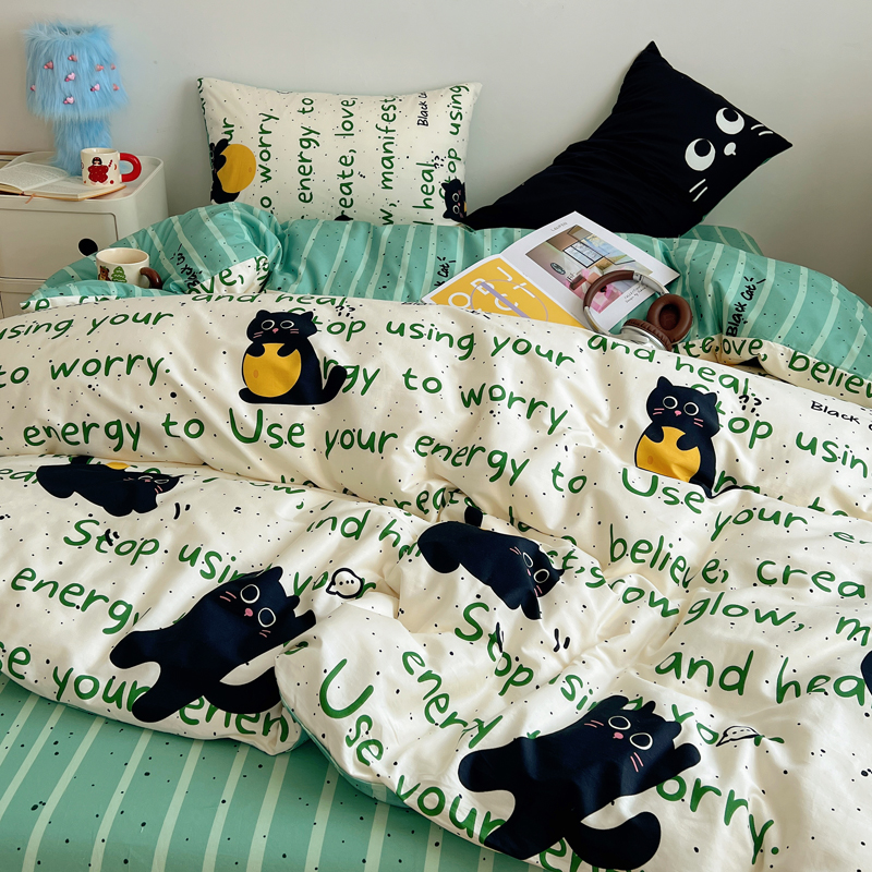 商品名称:桃喜 2024新款全棉卡通数码印花混搭系列四件套 小黑猫