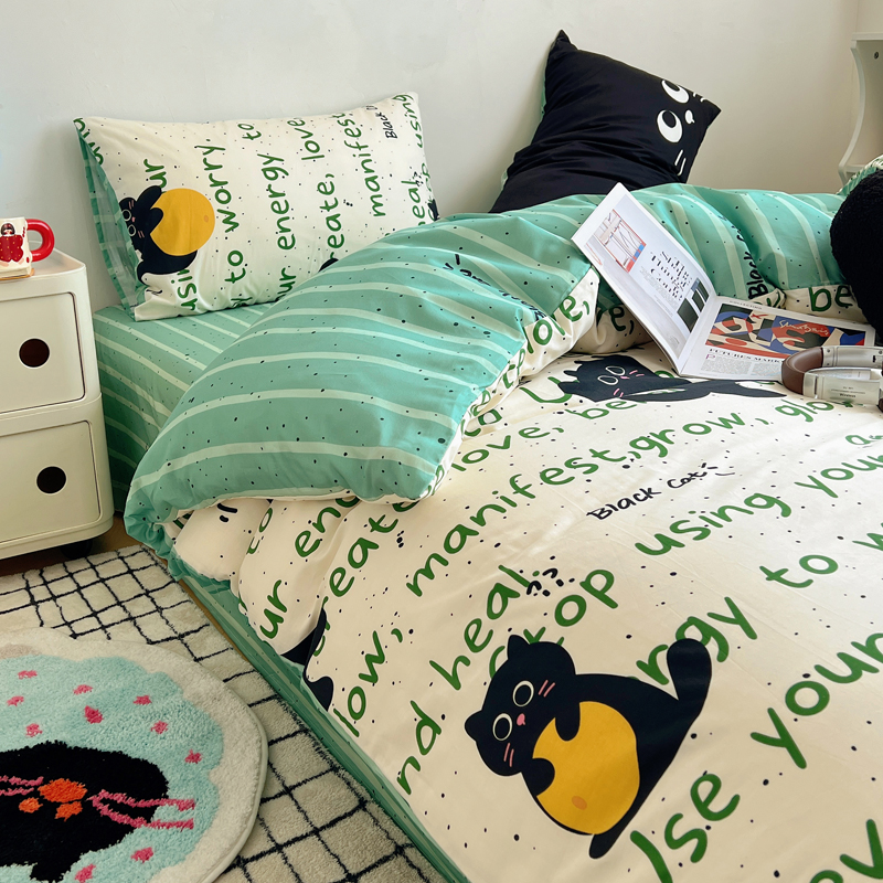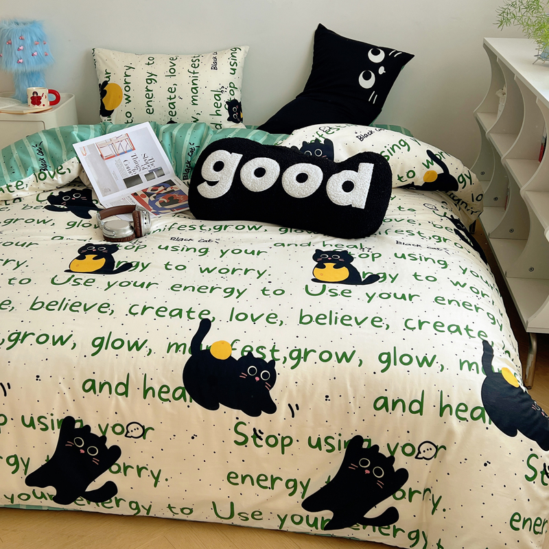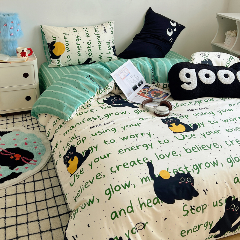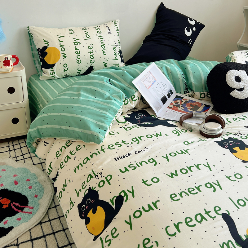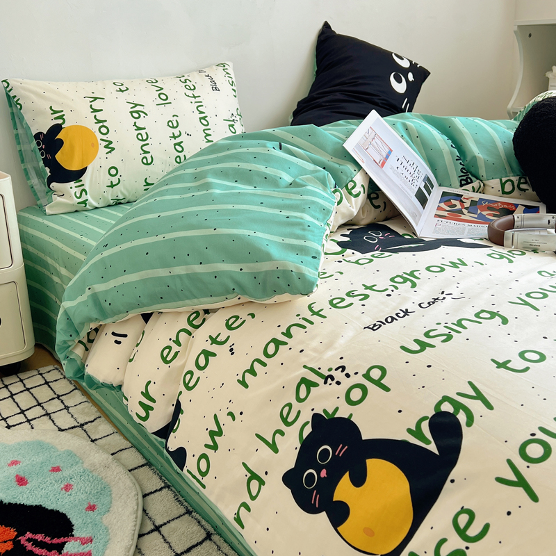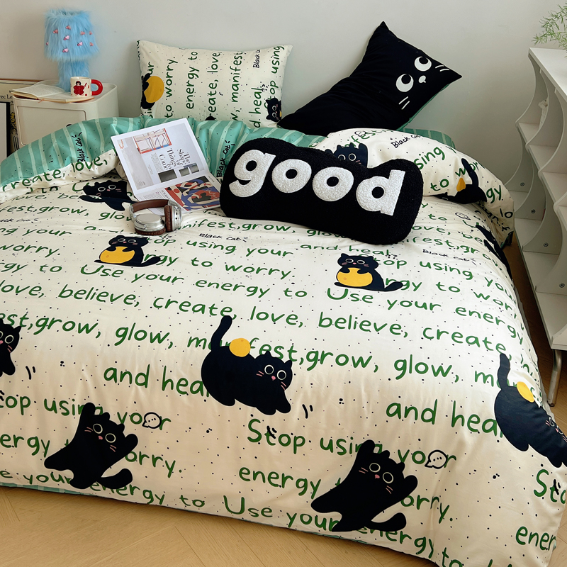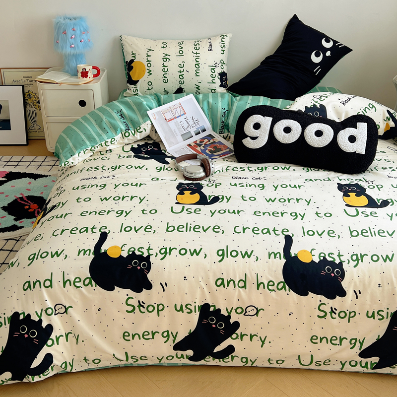 商品名称:桃喜 2024新款全棉卡通数码印花混搭系列四件套 小黑猫
