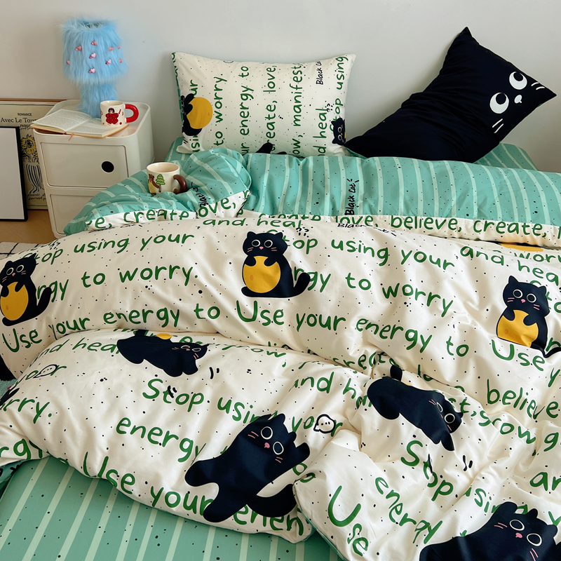 桃喜 2024新款全棉卡通数码印花混搭系列四件套 小黑猫
