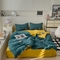 蓝淋 2024新春款日式简约婴儿可以啃咬的超柔混搭水洗棉四件套 湖蓝+姜黄