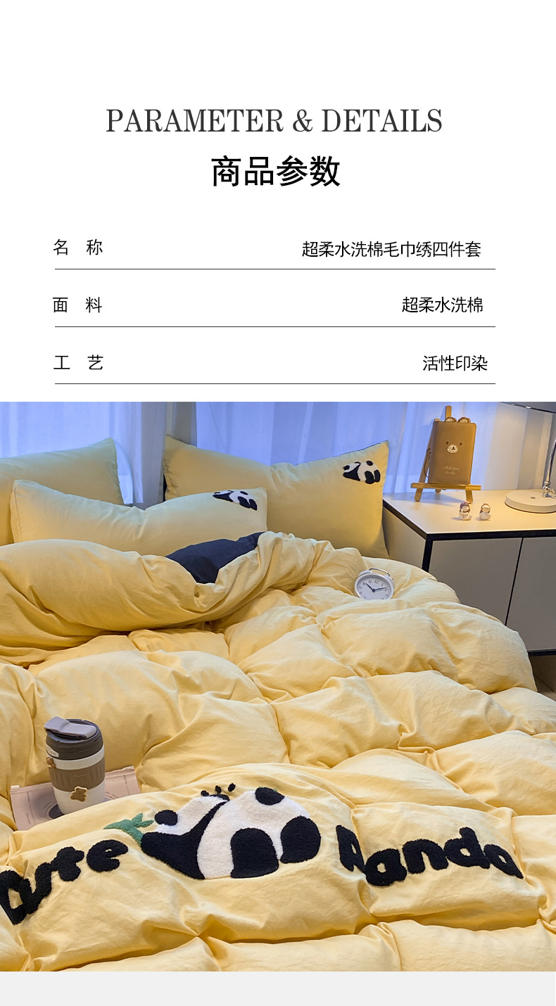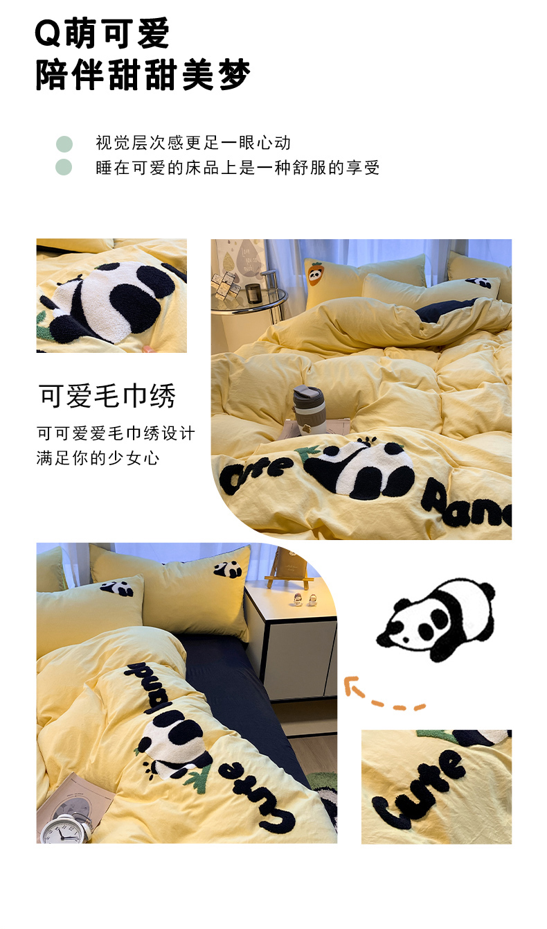 当前位置: 91家纺网 > 商品网购 > 床品套件 > 四件套 > 水洗棉四件套 > 葡萄家 2024新款超柔水洗棉毛巾绣四件套 毛巾绣水洗棉-趴睡熊猫