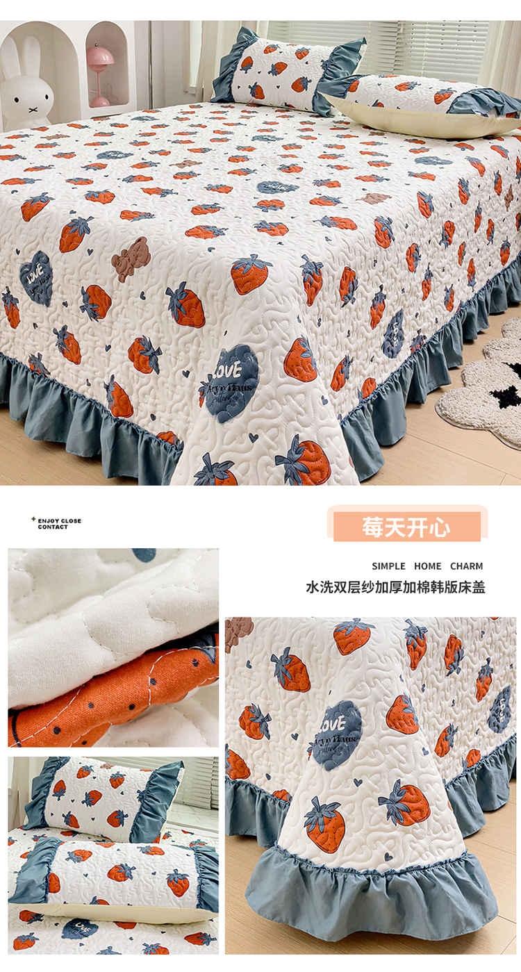 商品名称:纽缦家纺 2024水洗双层纱加厚加棉韩版床盖 莓天开心