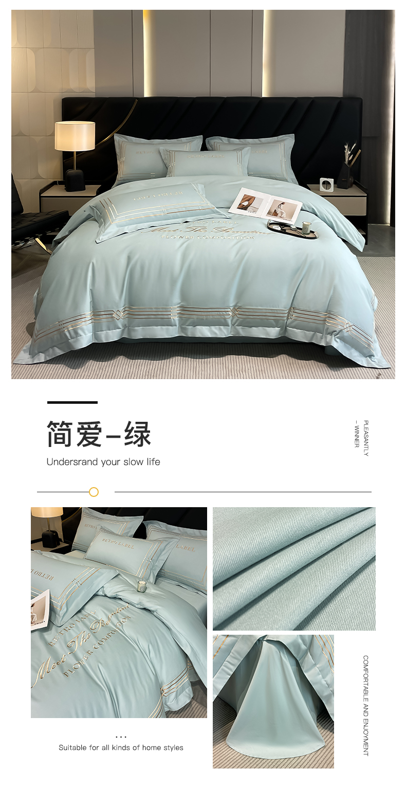 理想家家纺 2024新款纯棉13372全棉刺绣四件套 简爱-绿