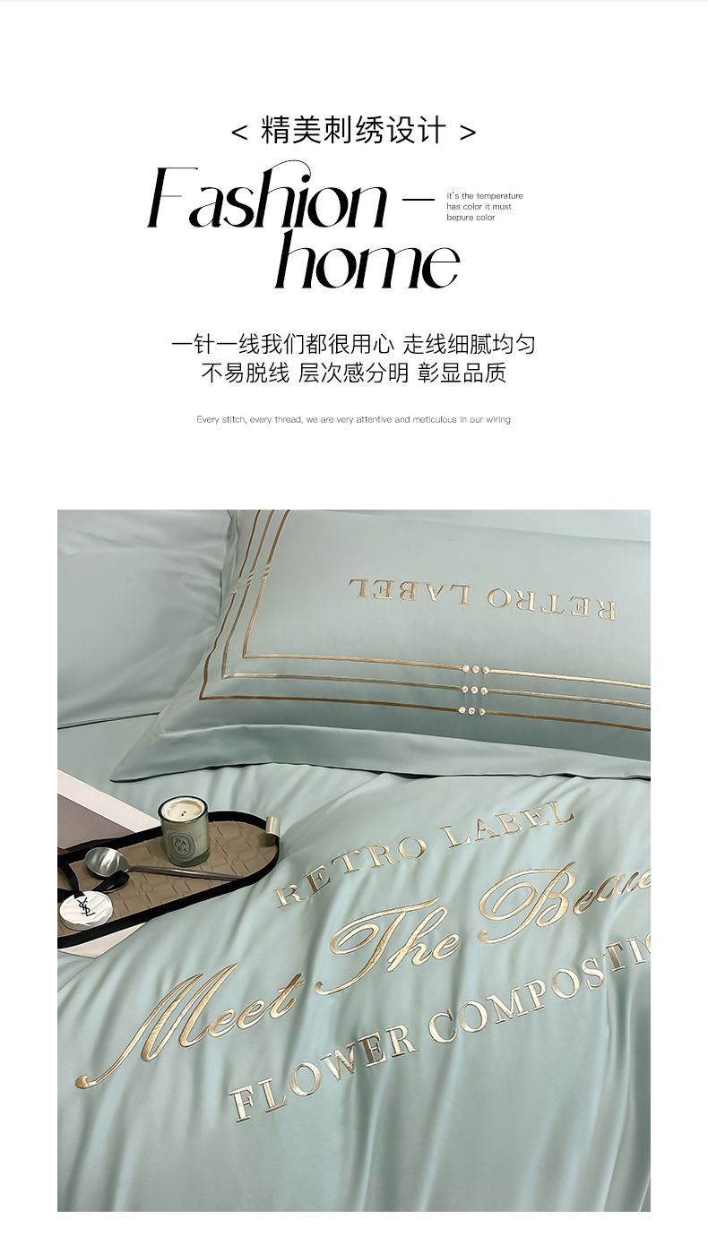 商品名称:理想家家纺 2024新款纯棉13372全棉刺绣四件套 简爱-绿