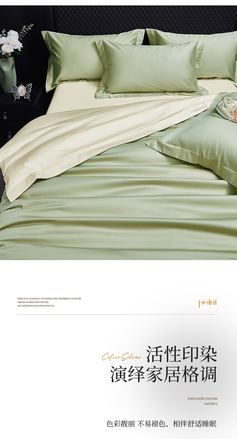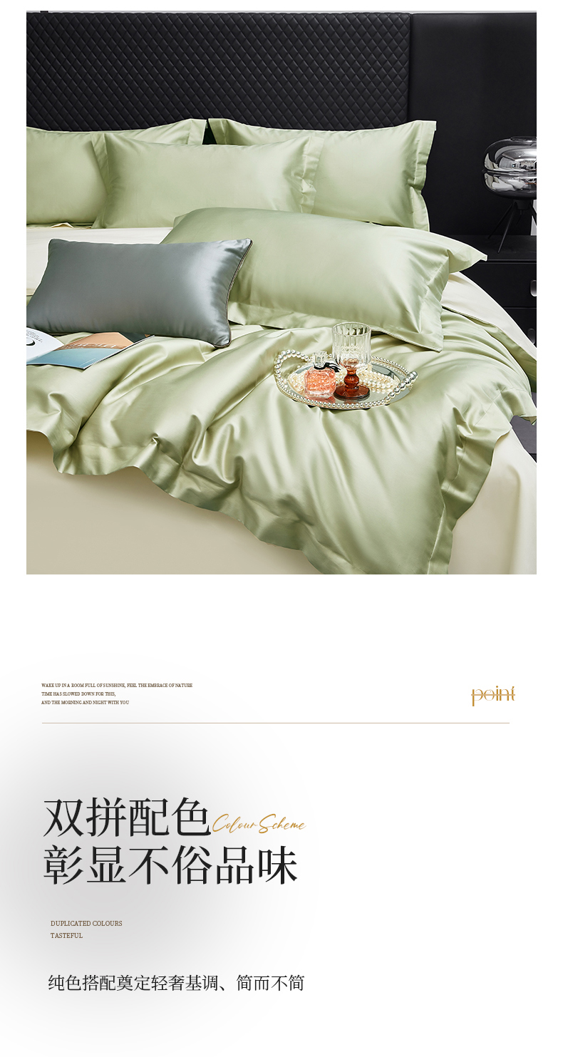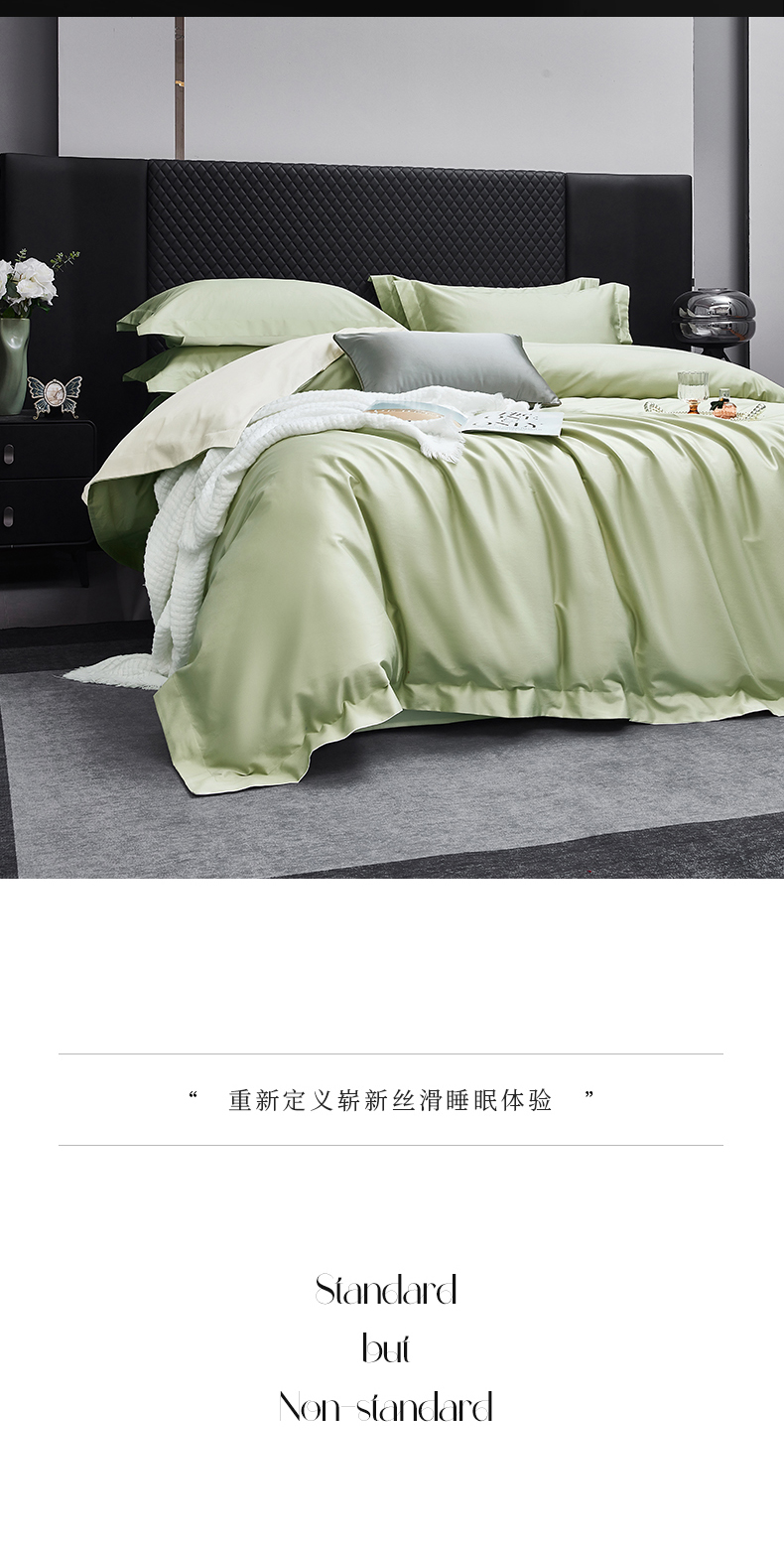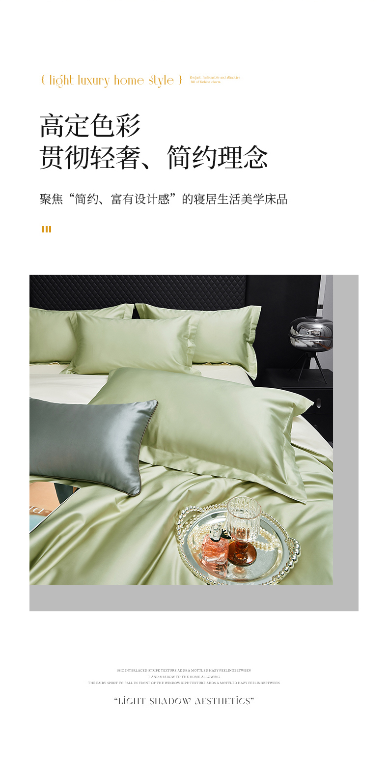 (总)利欧 2025新款W拼边系列水洗真丝四件套,W-抹茶绿,W-奶白
