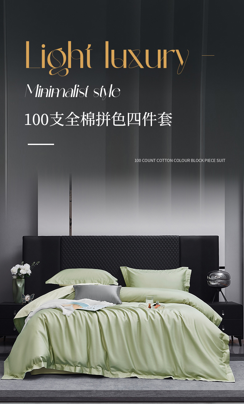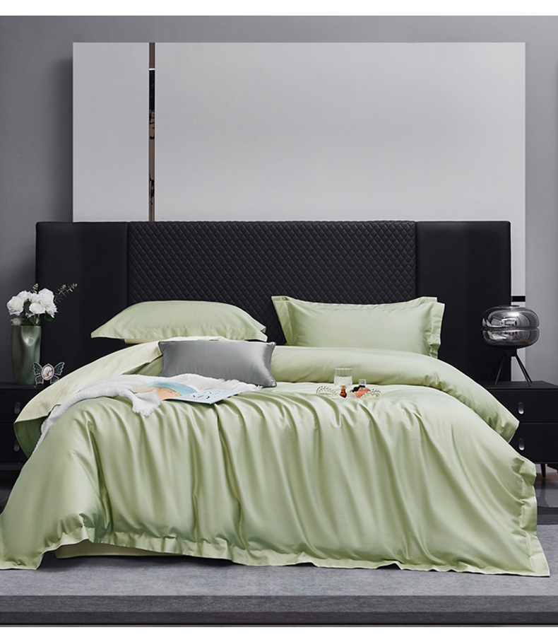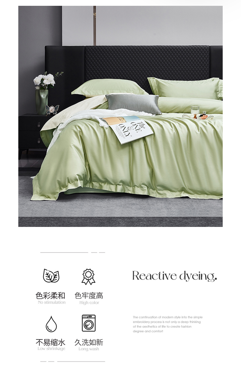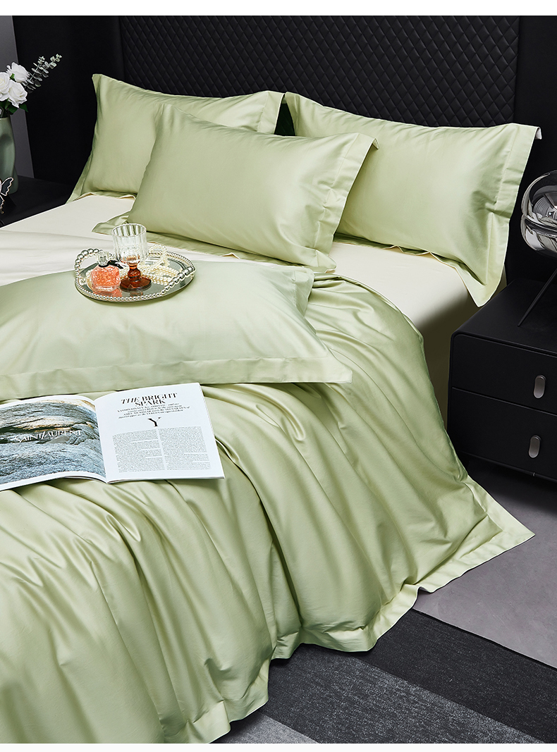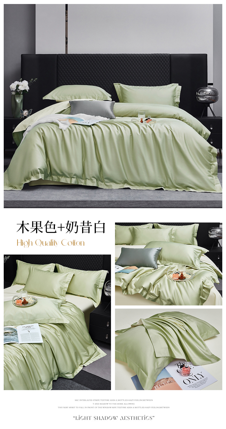 (总)利欧 2025新款W拼边系列水洗真丝四件套,W-抹茶绿,W-奶白
