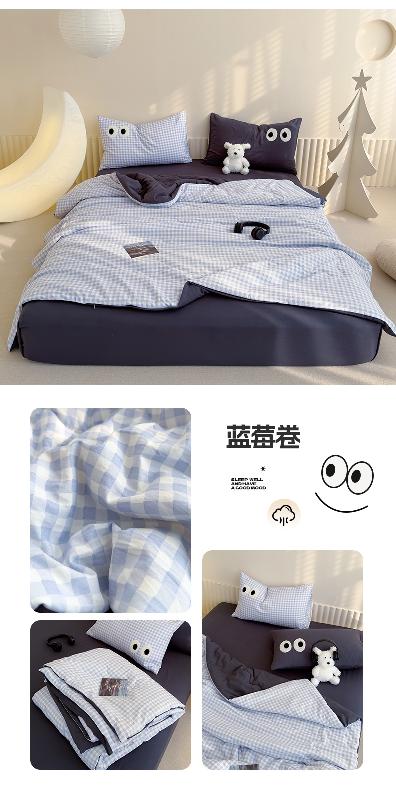商品名称:老帅的工厂店 2025新款多巴胺水洗云朵棉大眼睛系列夏被四件套 蓝莓卷