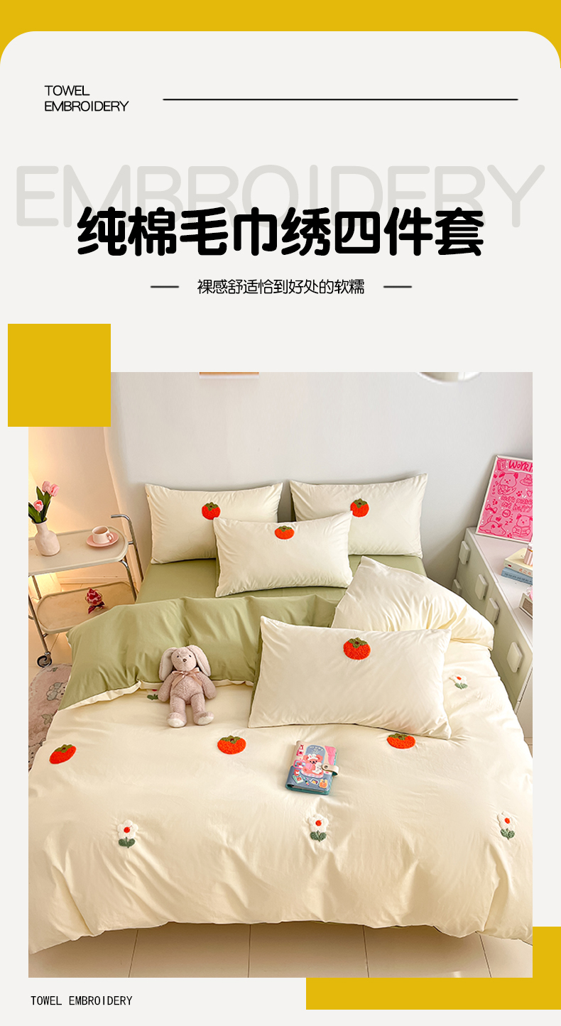 商品名称:琪格格2024新款纯棉毛巾绣四件套 心想事成