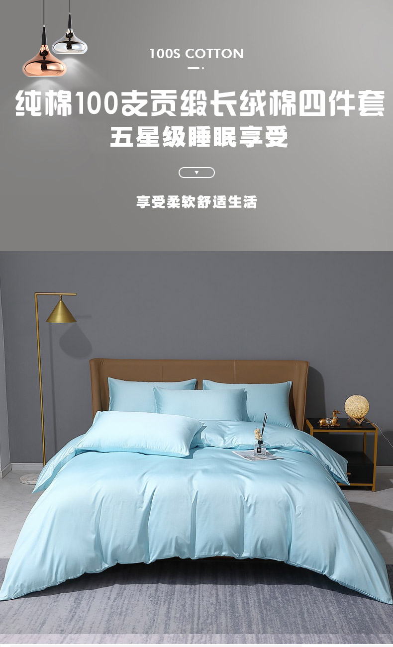当前位置: 91家纺网 > 商品网购 > 床品套件 > 四件套 > 长绒棉四件套 > 晶缦家纺 2024新款100S全棉贡缎长绒棉纯色四件套和单品-纯沐系列 四件套 纯沐-浅天蓝