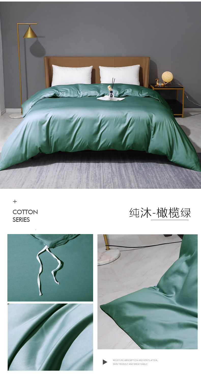 晶缦家纺 2024新款100S全棉贡缎长绒棉纯色四件套和单品-纯沐系列 单被套 纯沐-橄榄绿