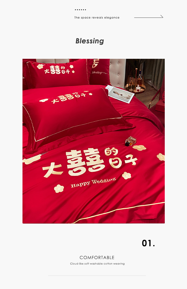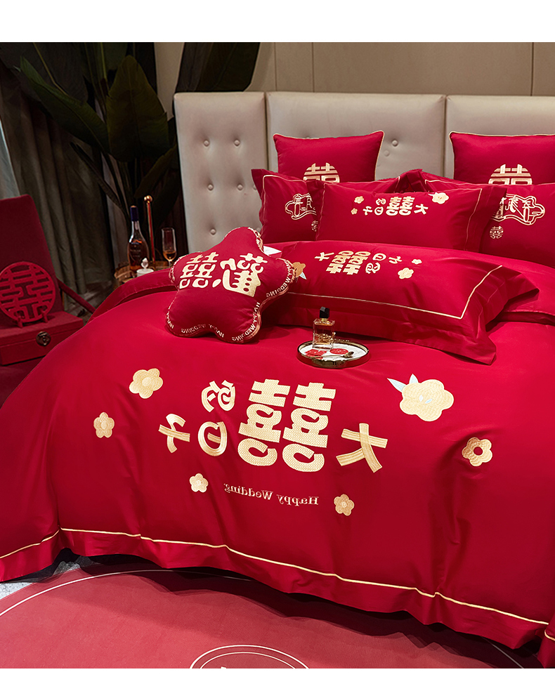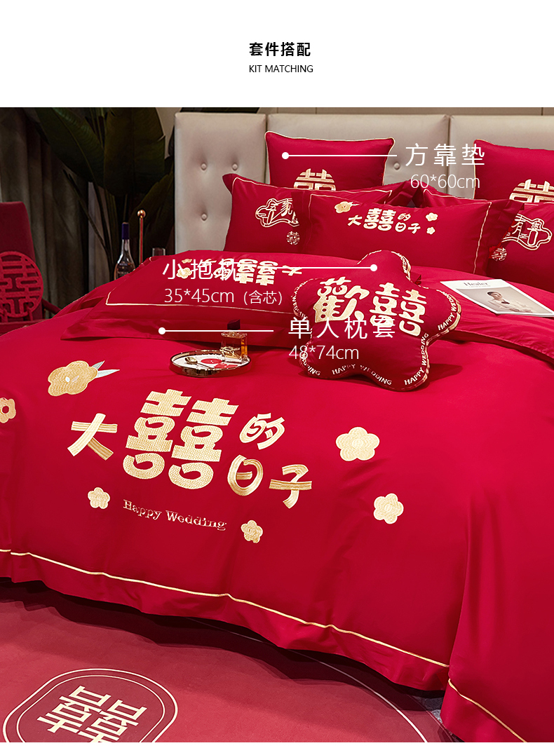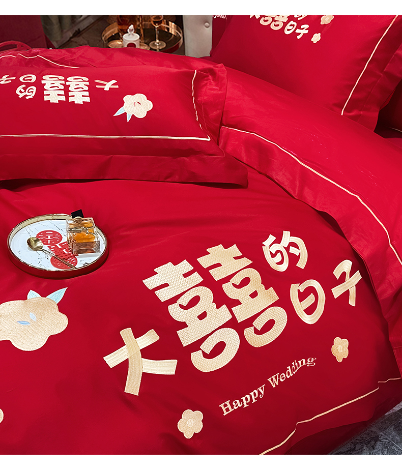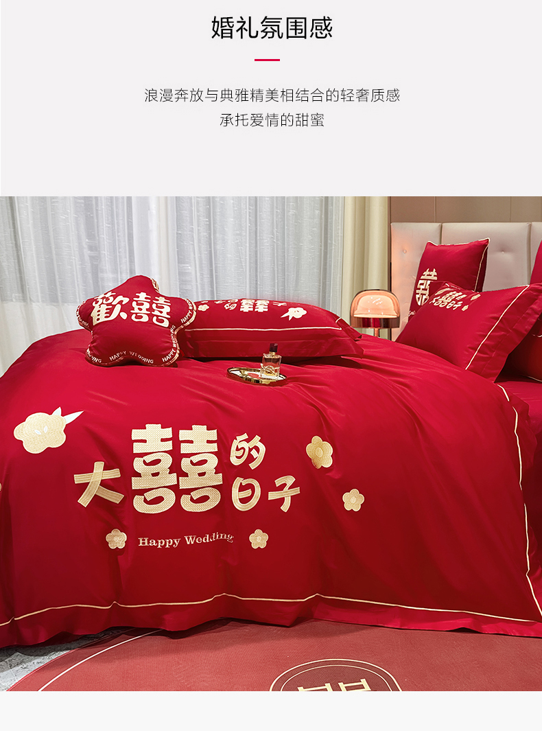 甜咪咪2024春夏新款天丝棉磨毛婚庆四件套多件套 喜临门