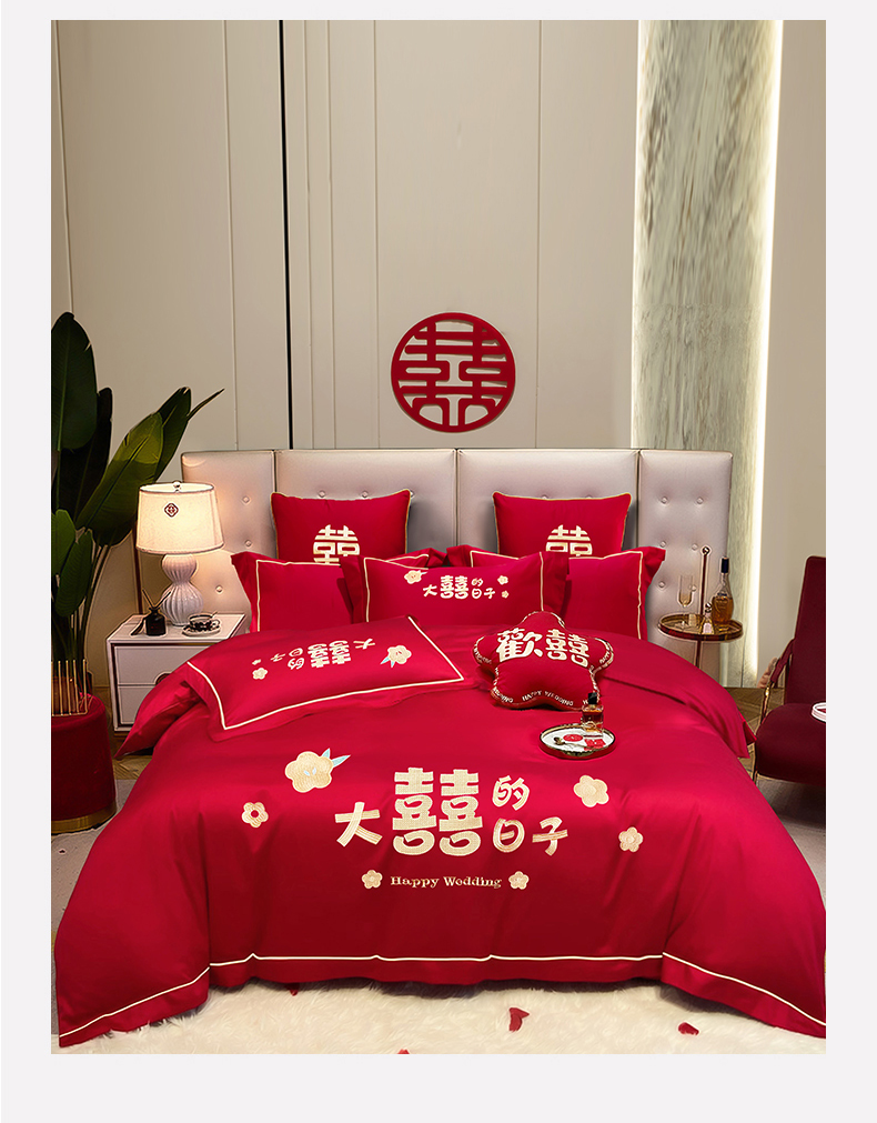 (总)甜咪咪婚庆 2025新款50支长绒棉全棉婚庆床单床盖四件套多件套刺绣工艺,洛可可,爱恋小熊,爱意久久,多子多福,花田喜事,节节高升,克拉恋人,浪漫情怀,怦然心动红,怦然心动玉,甜心玫瑰,温莎公主,伊甸园,醉红妆