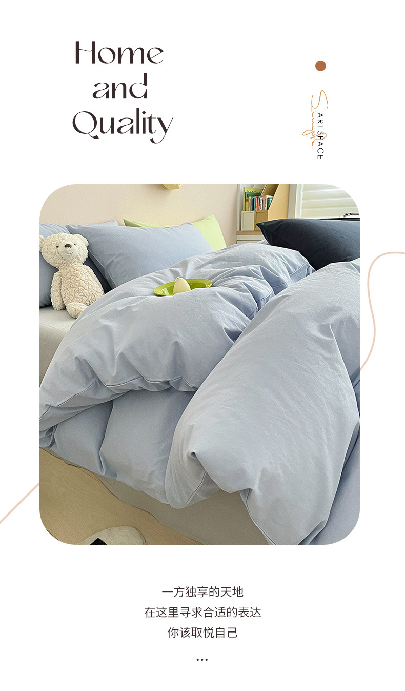 商品名称:寐居家纺 2024新款INS风全棉撞色单被套 ins风-迷雾蓝