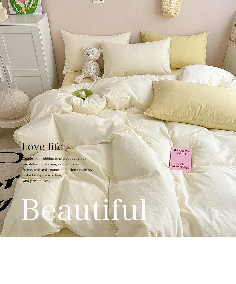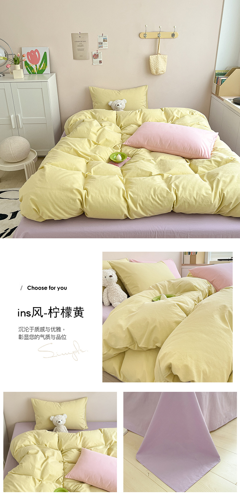 (总) 寐居 2023新款双拼全棉水洗棉纯色四件套,ins风-草绿色,ins风-湖绿色,ins风-裸粉色,ins风-迷雾蓝,ins风-奶油黄,ins风-柠檬黄,ins风-樱花粉,鹅黄+香芋紫,焦糖+卡其,军绿+焦糖,米黄+卡其,米黄+深粉,奶油玉+鹅黄,深粉+湖蓝,深蓝+焦糖,藏青+浅灰,绿+牛油果绿,米黄+浅蓝,抹茶绿+橡木黄,奶油玉+橄榄绿,奶油玉+香芋紫,浅豆沙+浅灰,深蓝+灰