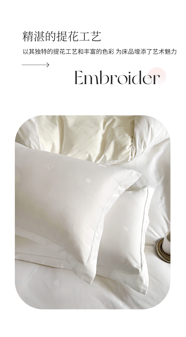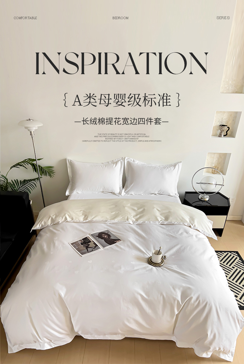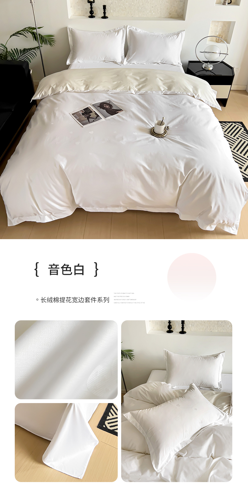 当前位置: 91家纺网 > 商品网购 > 床品套件 > 四件套 > 提花四件套 > 品乐家纺 2024新款100支长绒棉提花宽边四件套 音色白