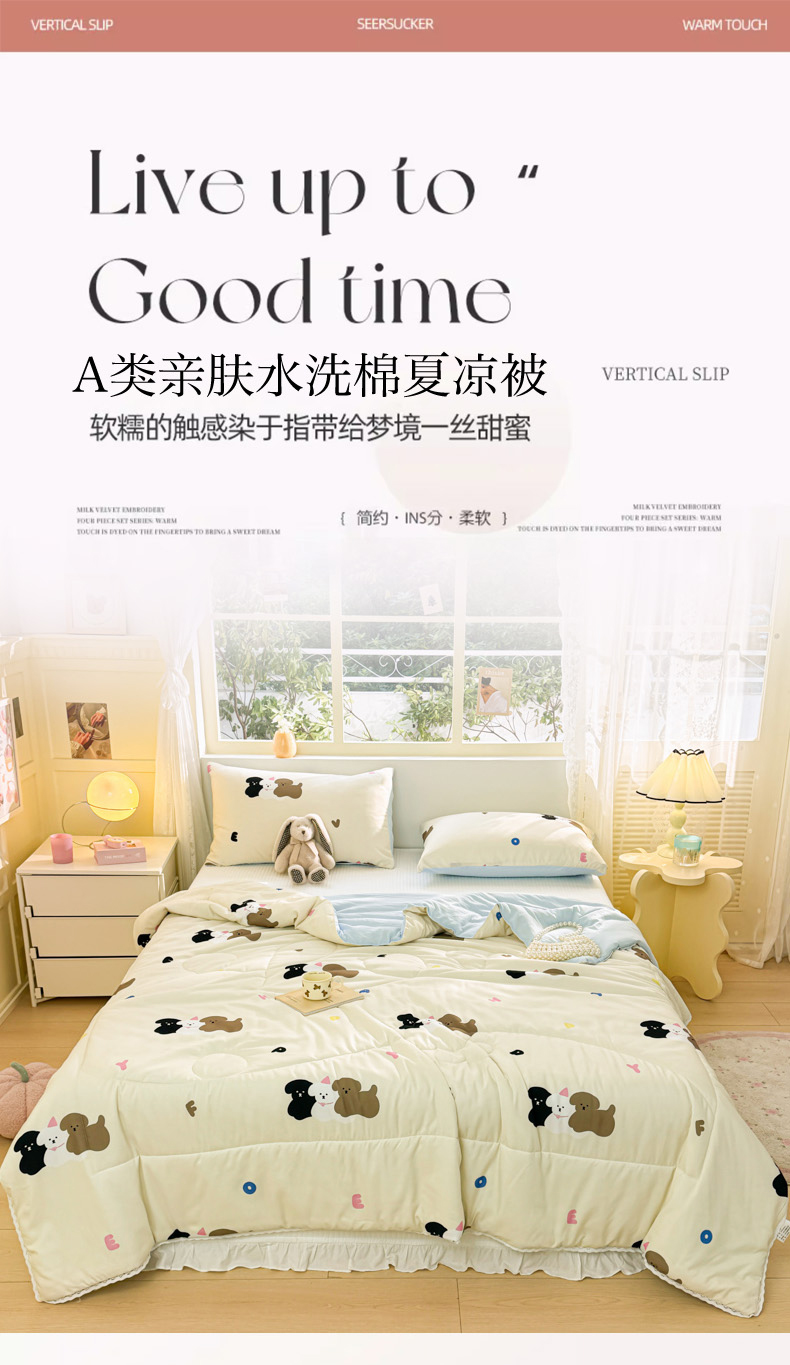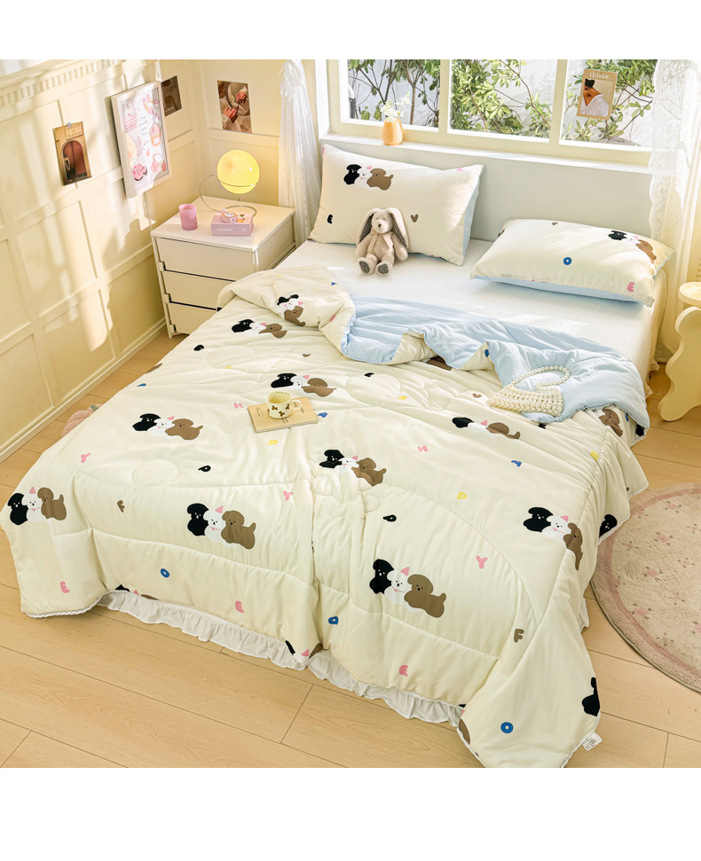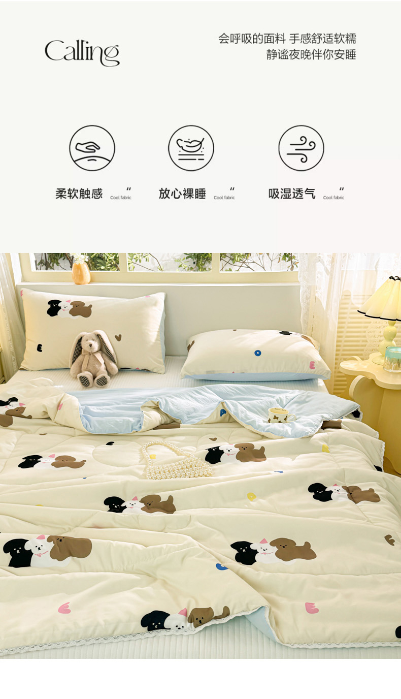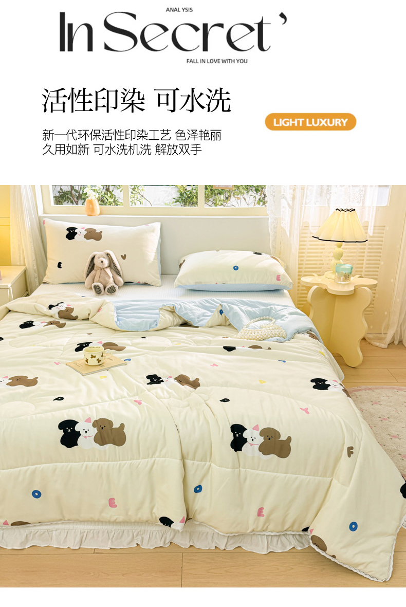 寐居家纺 2024新款水洗棉小花边夏被 字母狗