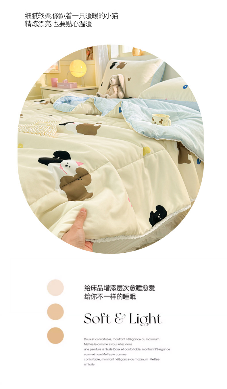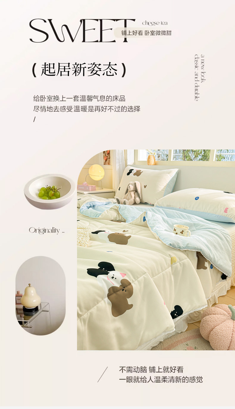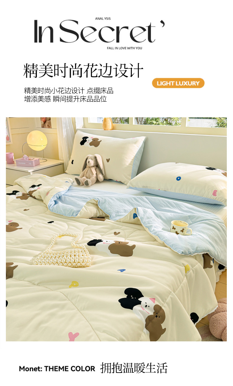 商品名称:寐居家纺 2024新款水洗棉小花边夏被 字母狗