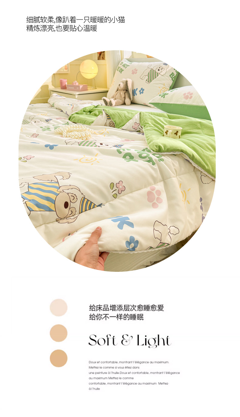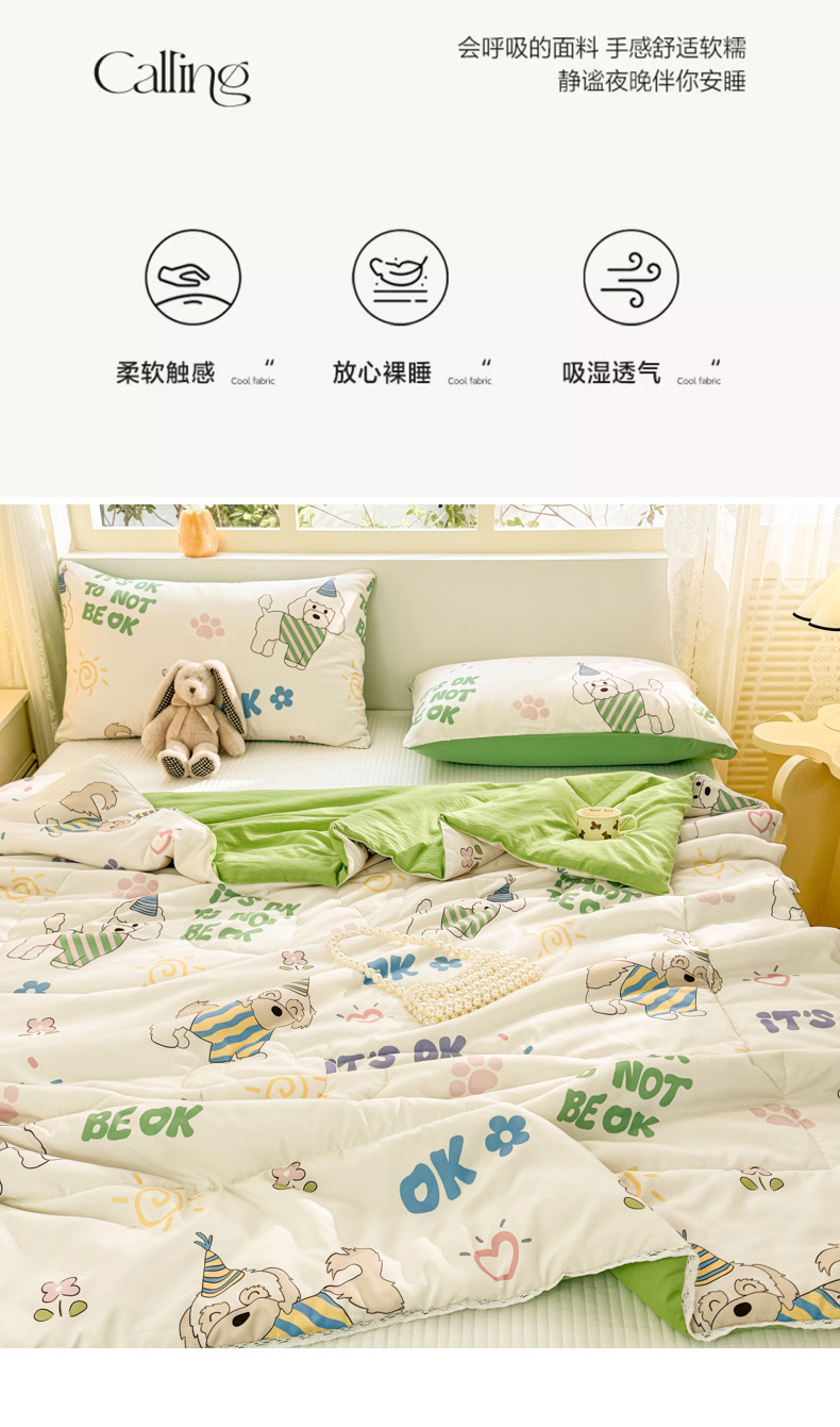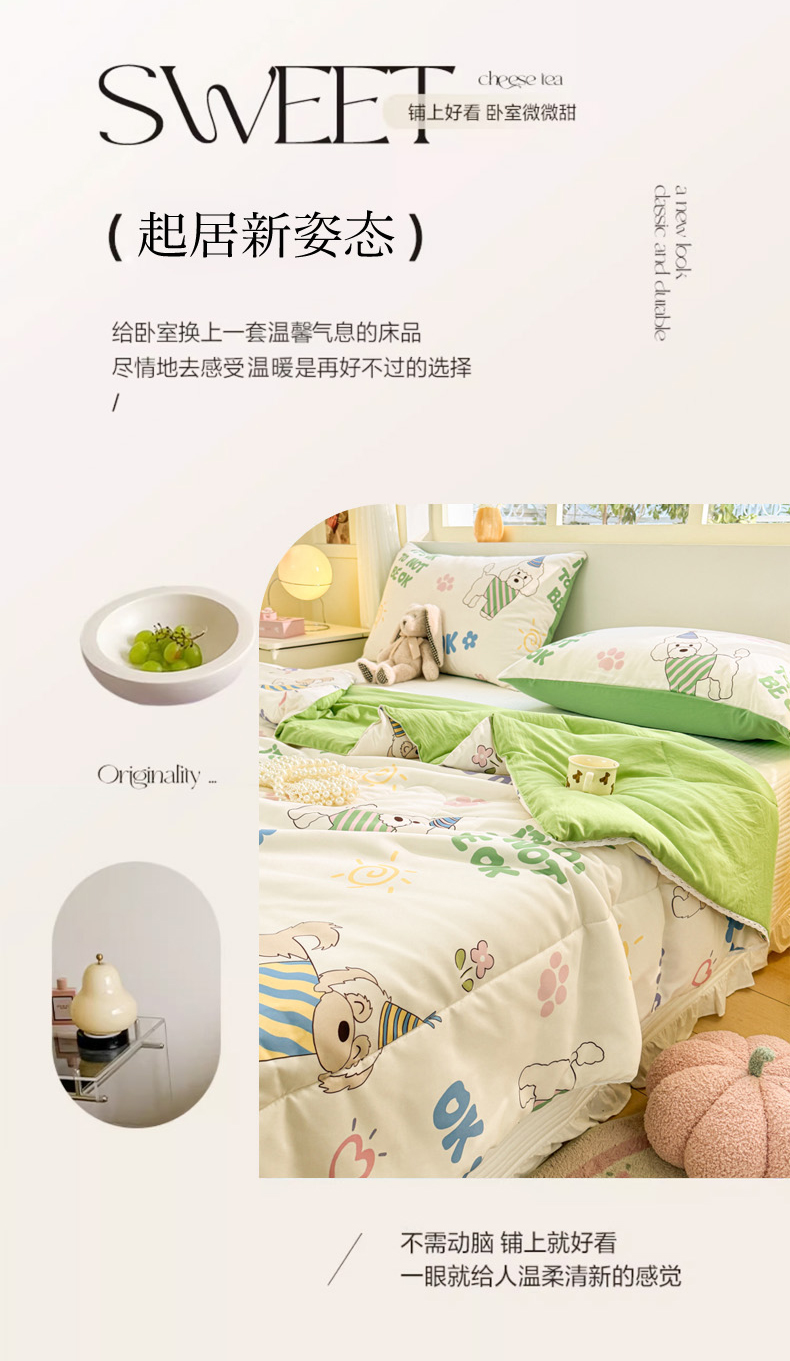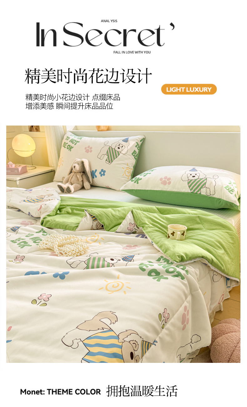 商品名称:寐居家纺 2024新款水洗棉小花边夏被 酷仔汪