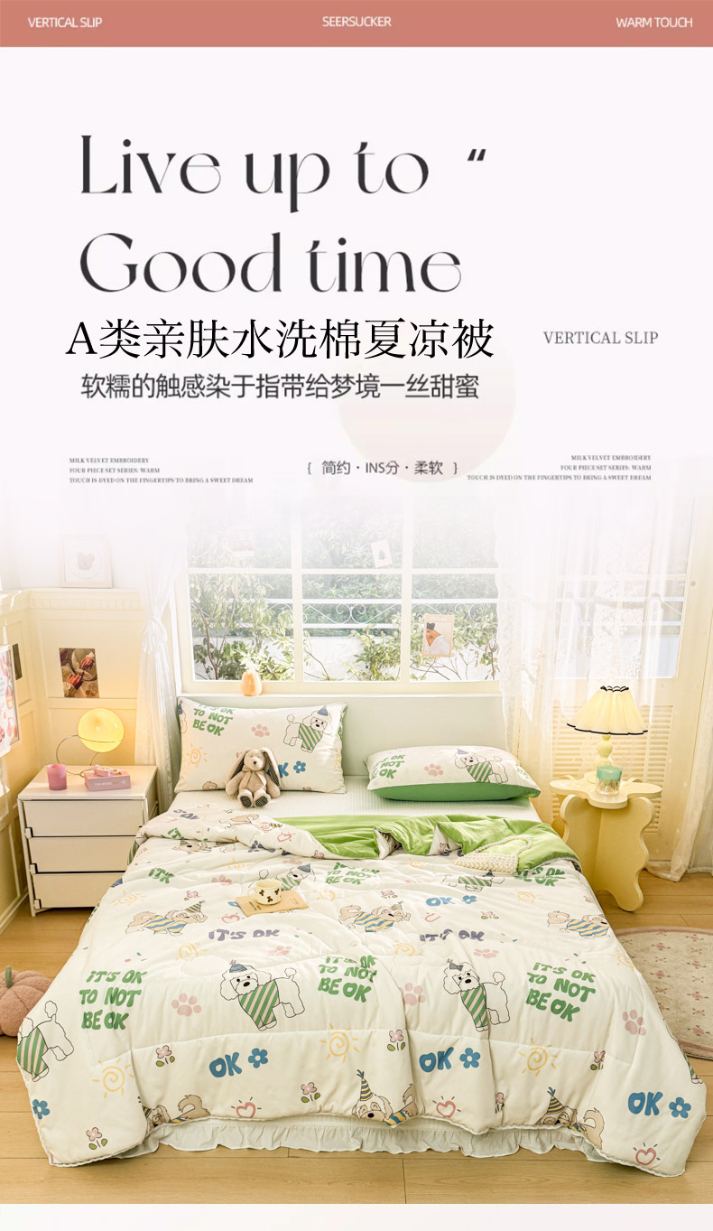 寐居家纺 2024新款水洗棉小花边夏被 酷仔汪
