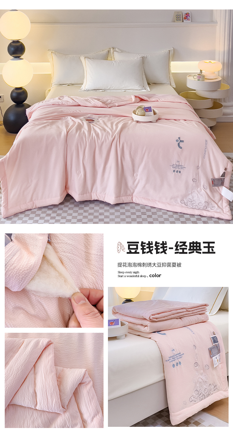 优姿家纺 2024新款提花泡泡棉刺绣大豆抗菌夏被 经典玉