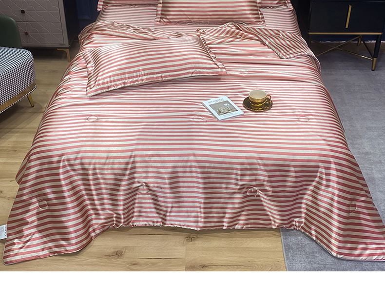 (总)11 经年:2025年条纹丝绸冰丝水洗真丝夏被四件套直播爆款
