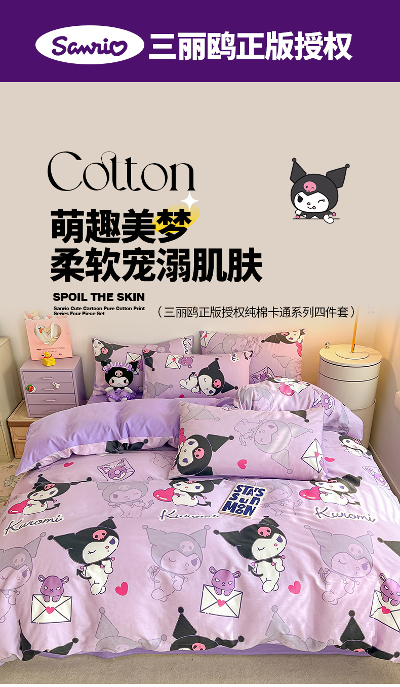 当前位置: 91家纺网 > 商品网购 > 床品套件 > 四件套 > 全棉普通四件套 > 桃子家居 2024新款三丽鸥正版授权全棉卡通系列四件套 棉三丽鸥-魔法库洛米