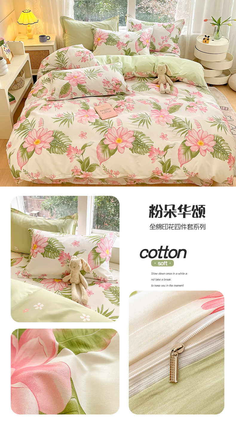 商品名称:绵庭家纺 2024新款AB版全棉印花系列四件套 粉朵华颂