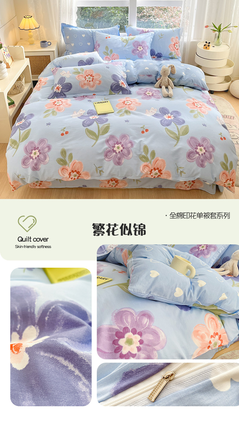 绵庭家纺 2024新款AB版12868全棉印花单被套 繁花似锦
