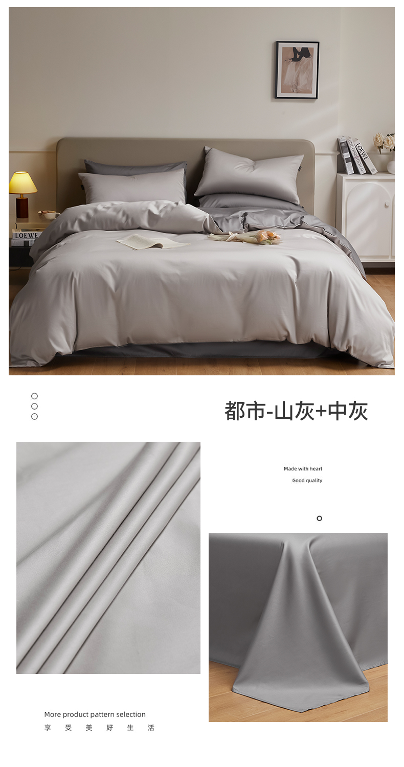 商品名称:慕色家纺 2024新款都市系列全棉纯色四件套 都市-山灰+中灰