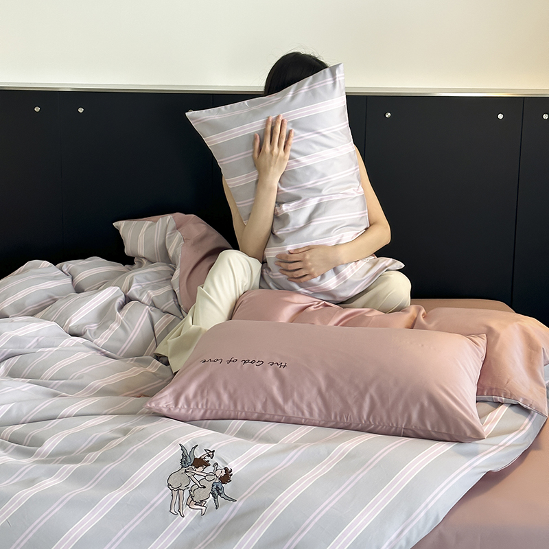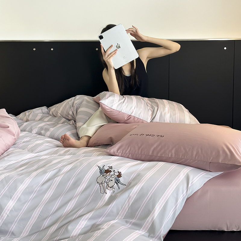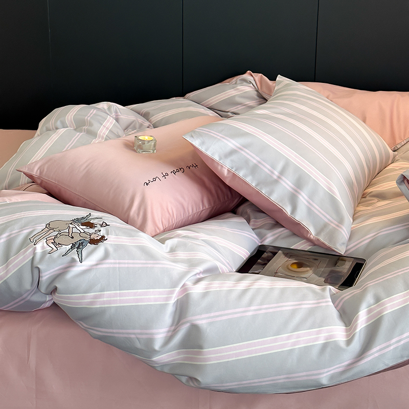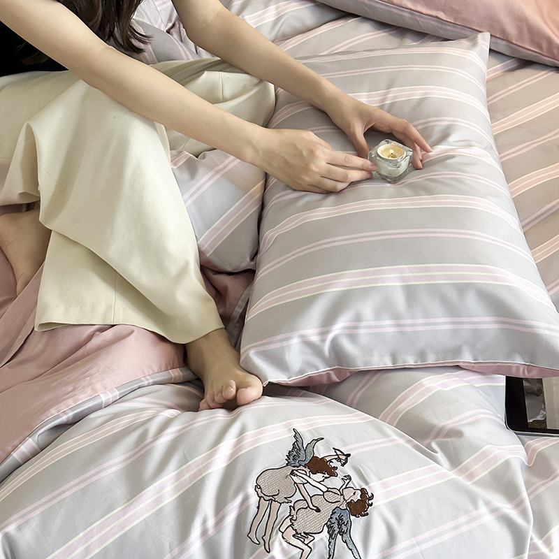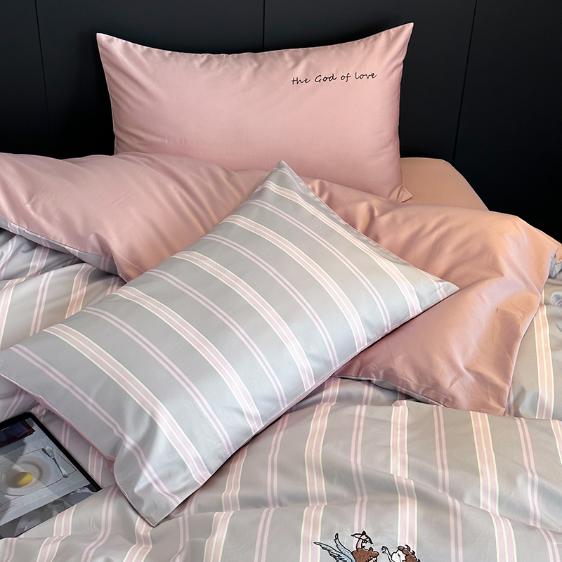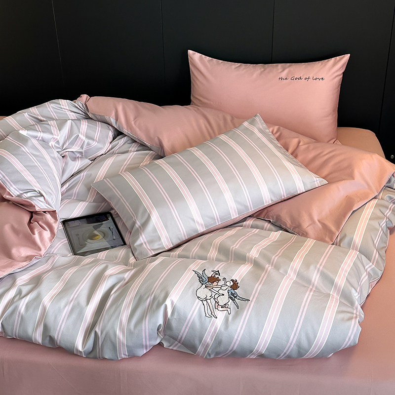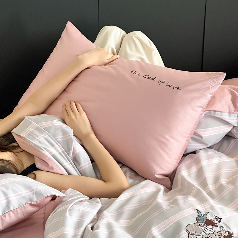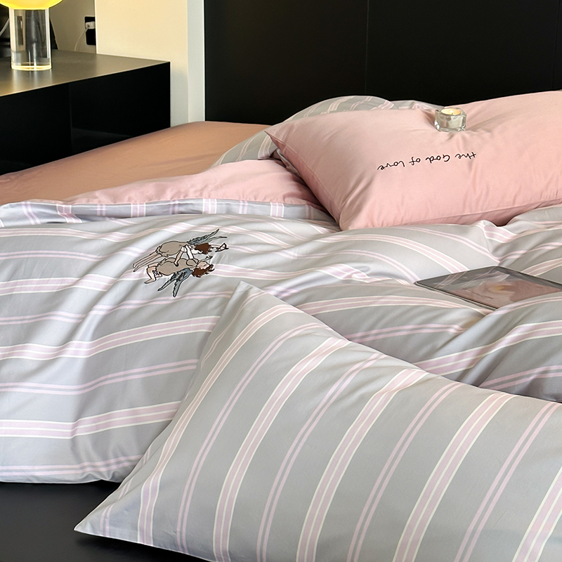 赫帛 新款50s缎纹数码印花长绒棉四件套--丘比特 粉色