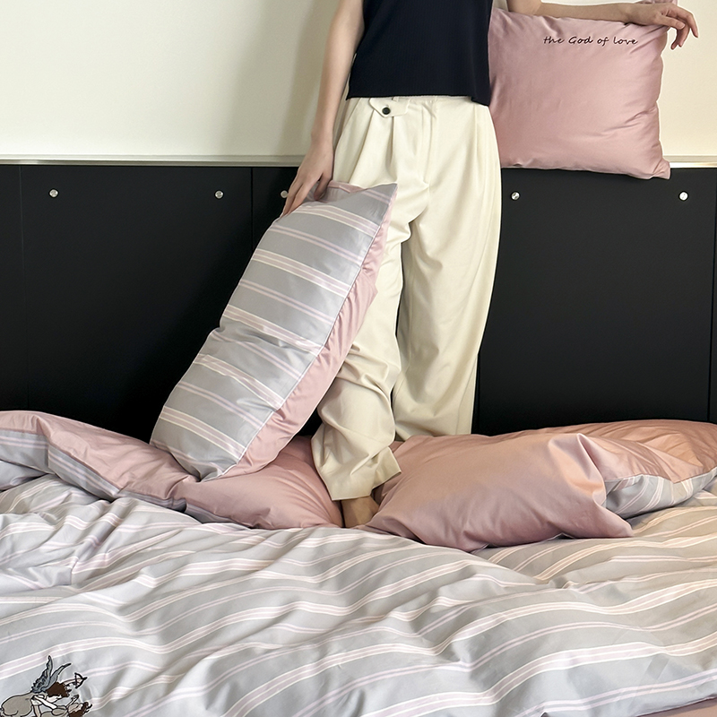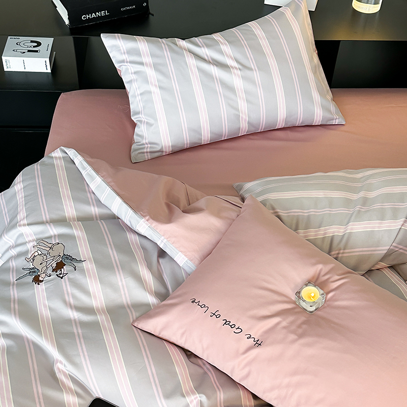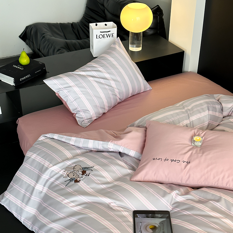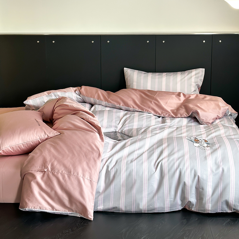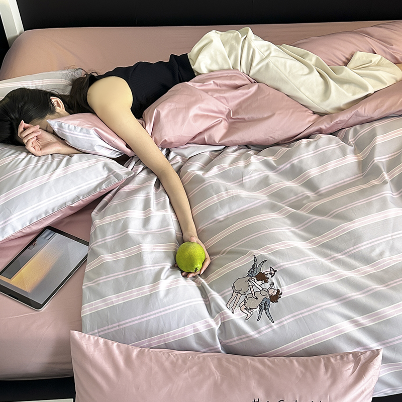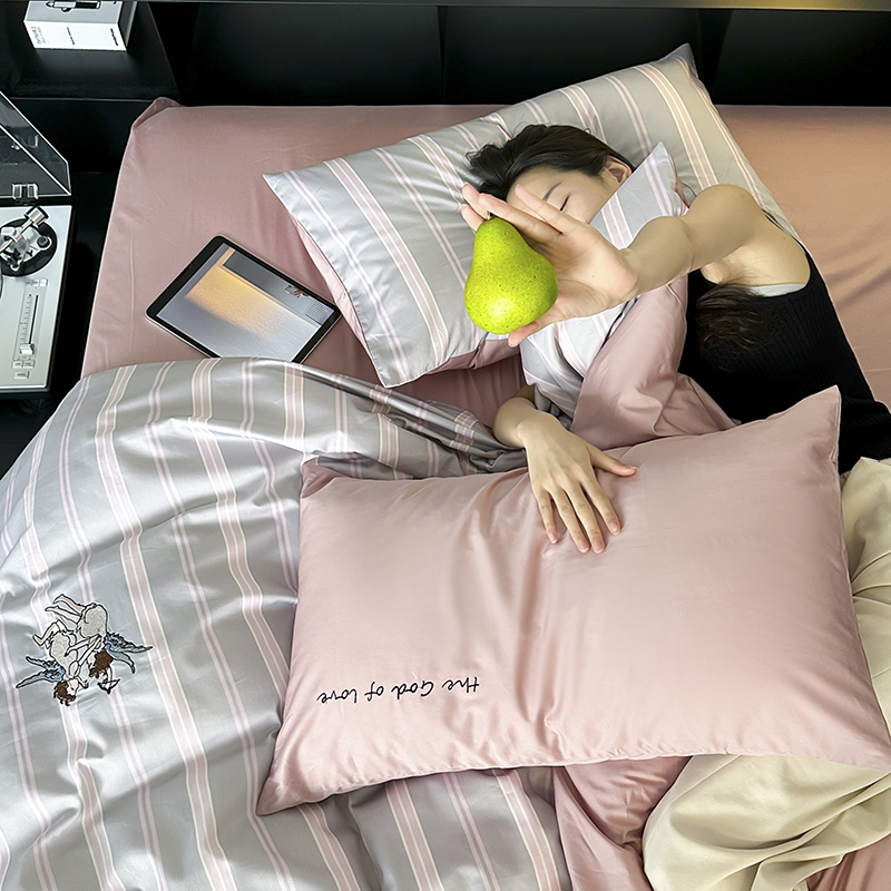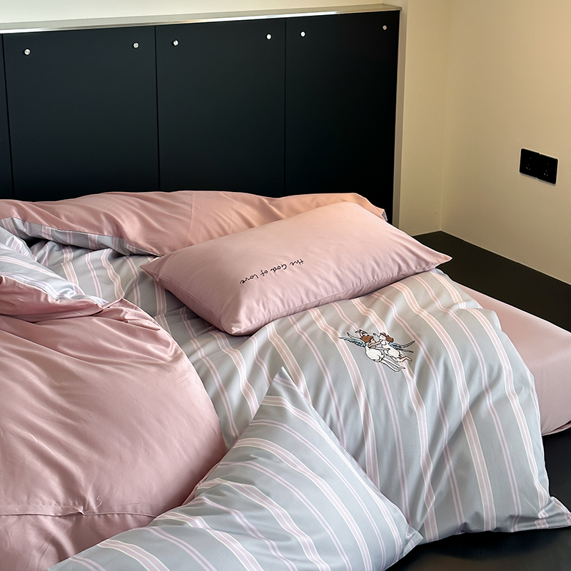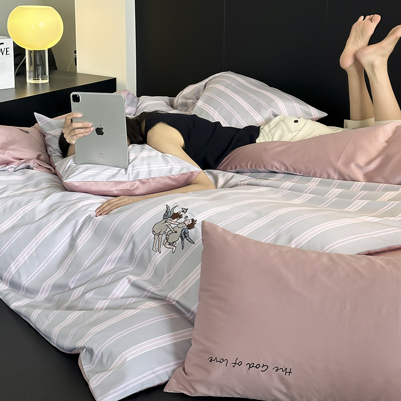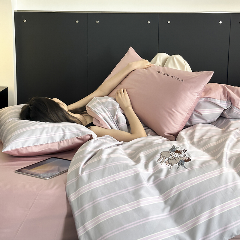 赫帛 新款50s缎纹数码印花长绒棉四件套--丘比特 粉色