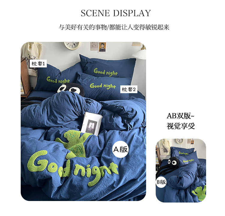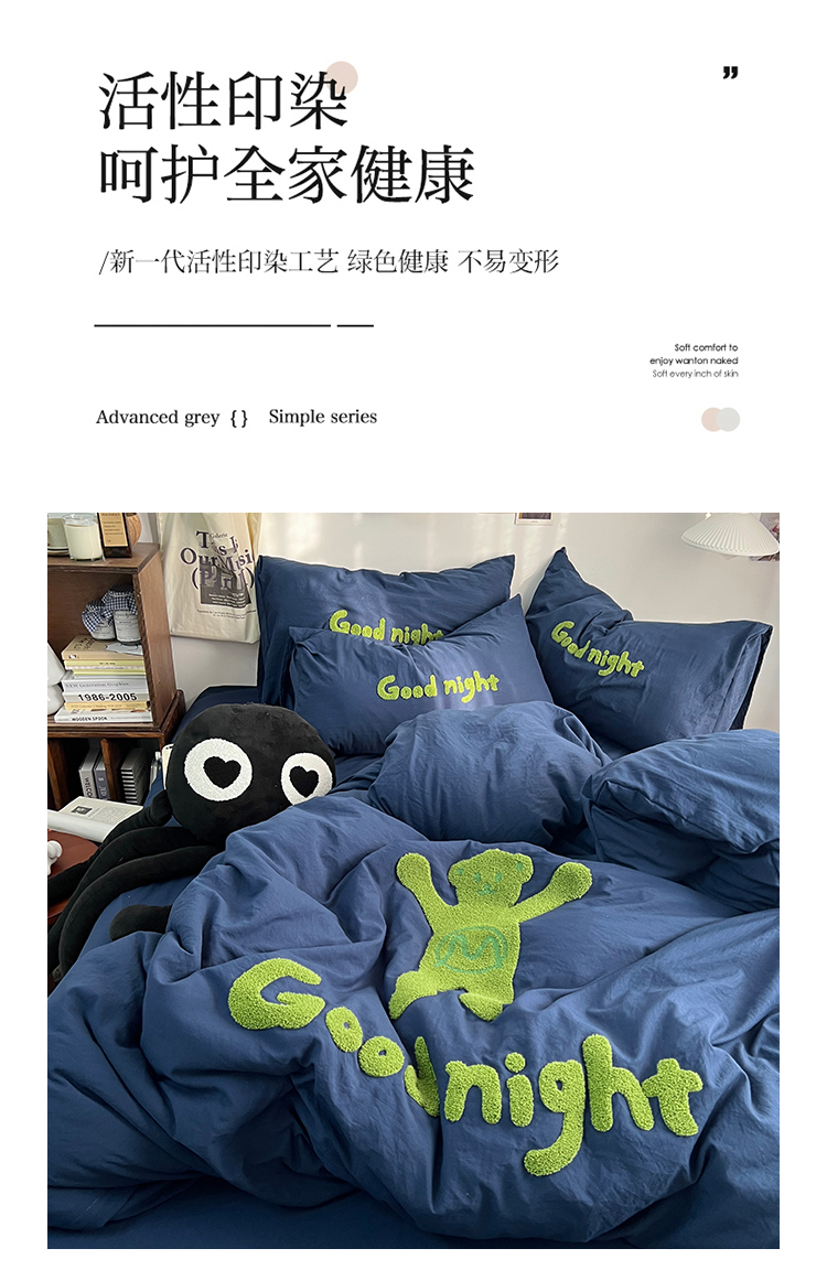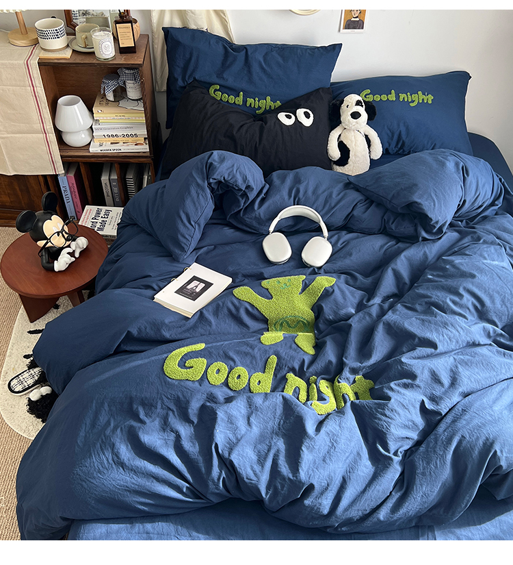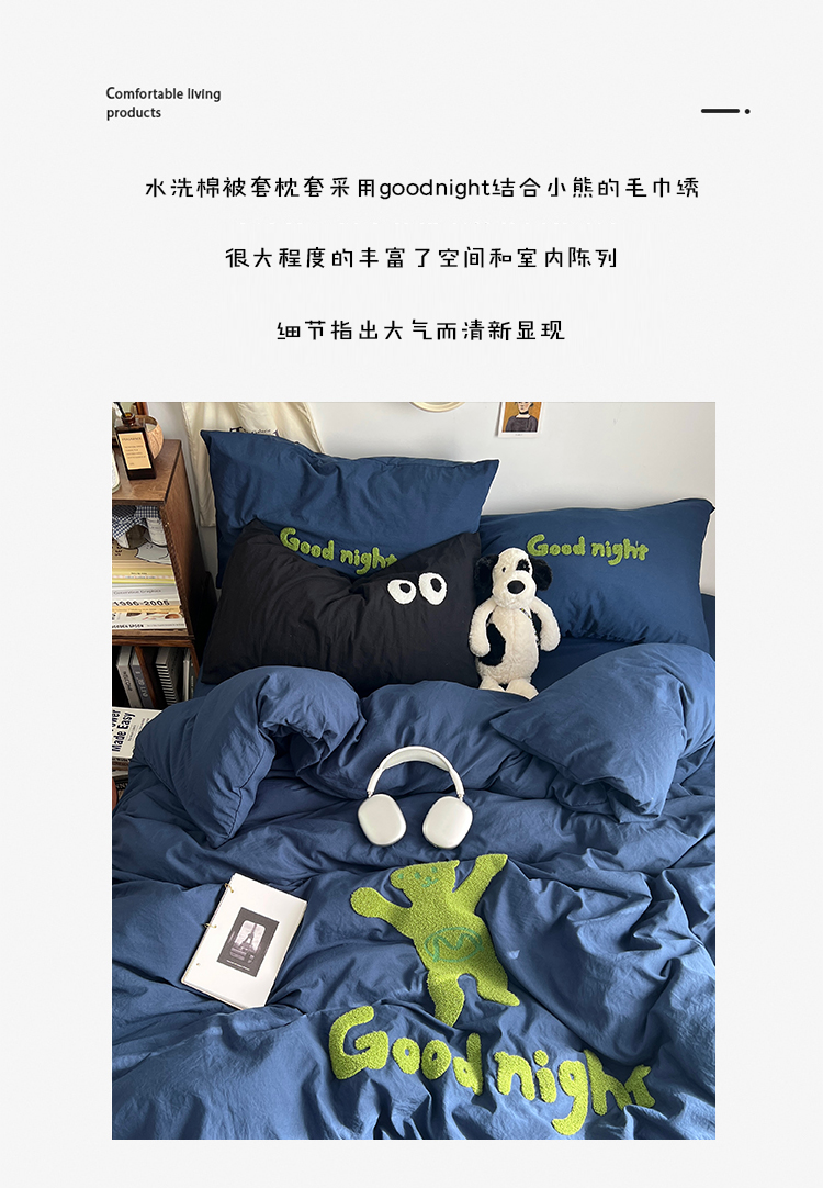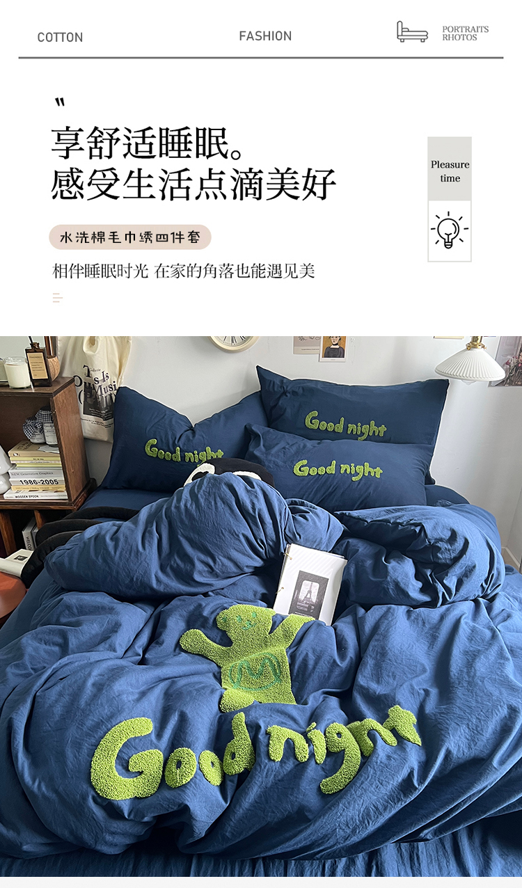 当前位置: 91家纺网 > 商品网购 > 床品套件 > 四件套 > 毛巾绣四件套 > 原素2024潮牌同款小熊大版毛巾绣四件套 Good night熊藏蓝色