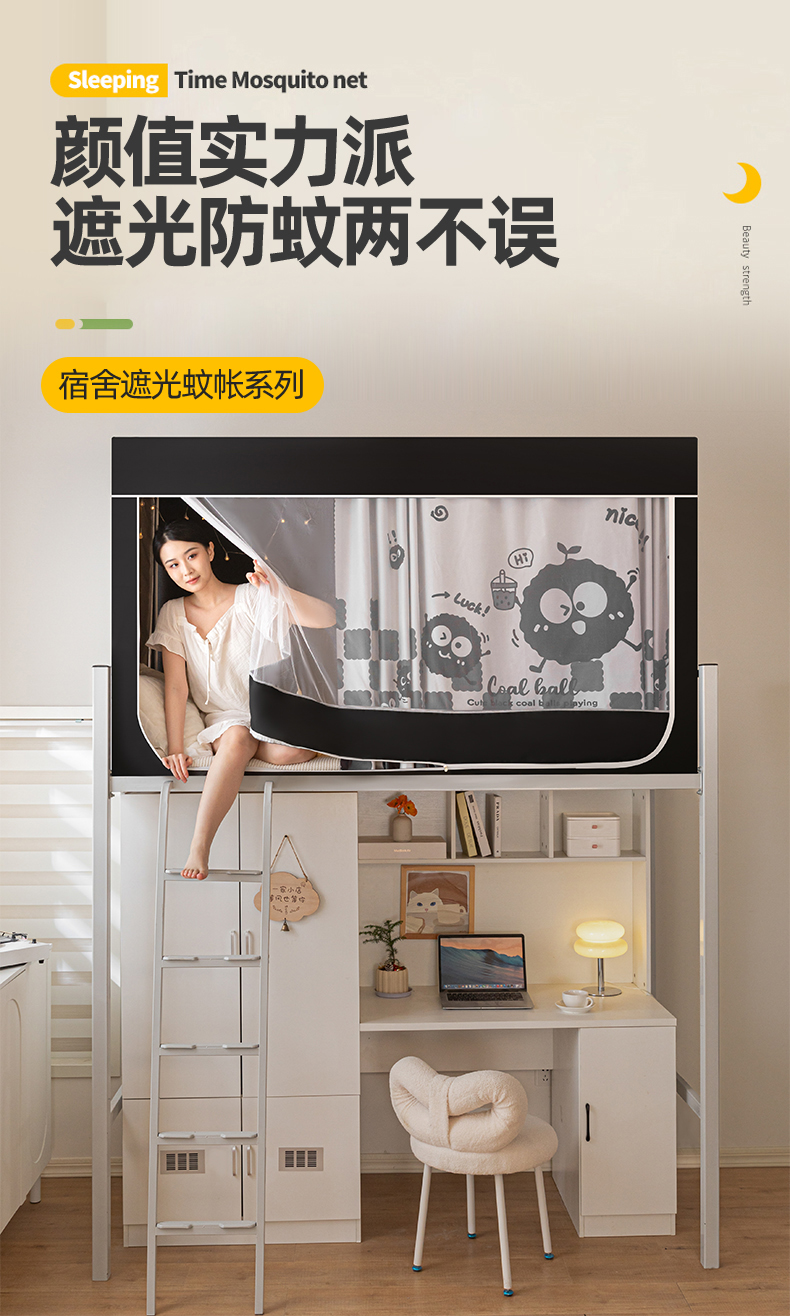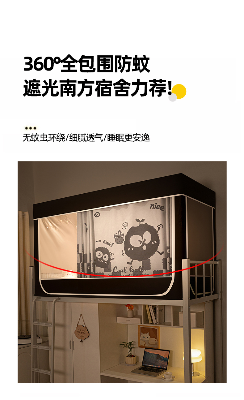 商品名称:博诺 2024新款99%全涂层遮光卡通学生蚊帐 小煤球