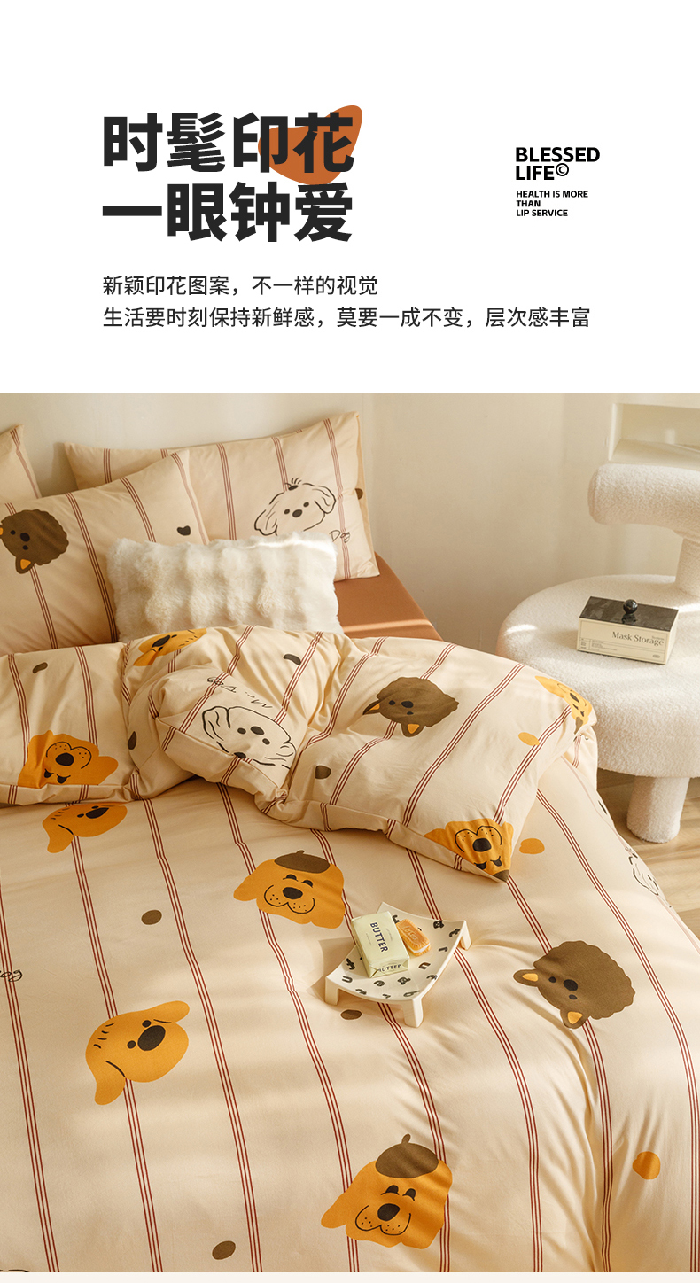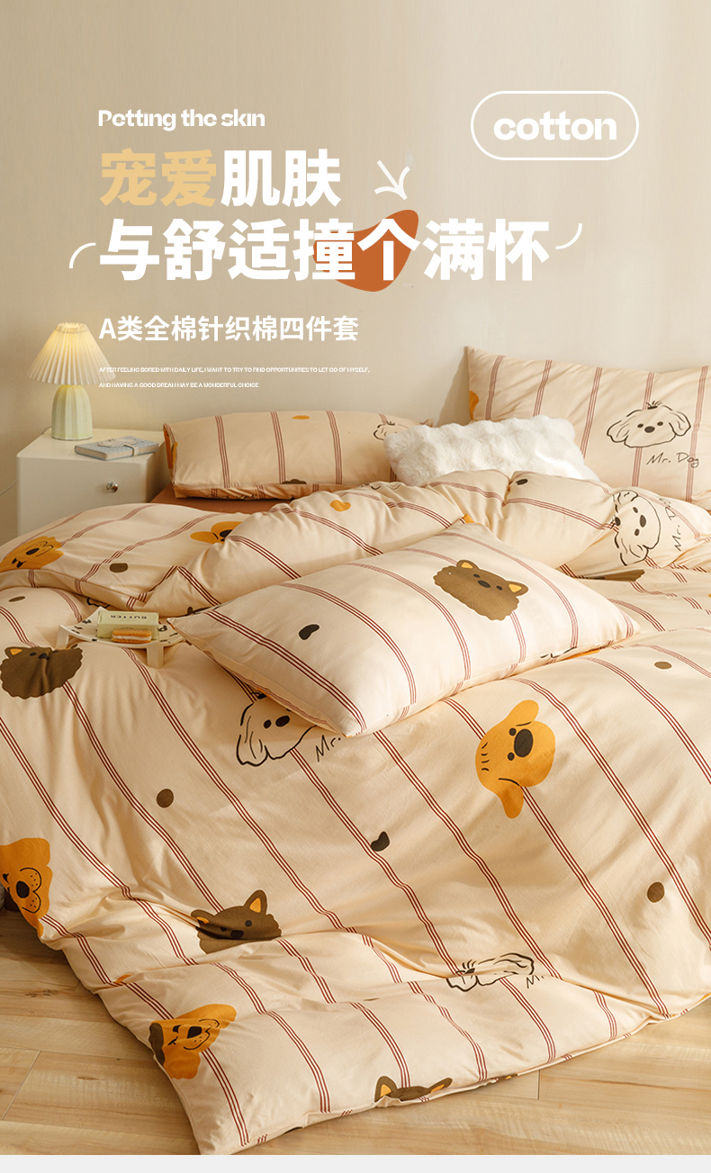 商品名称:瑞米家居 2024新款A类全棉针织棉四件套 调皮汪