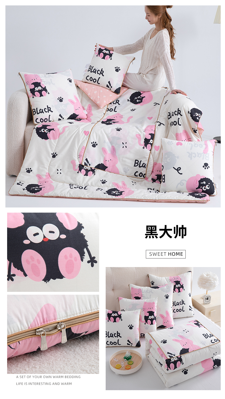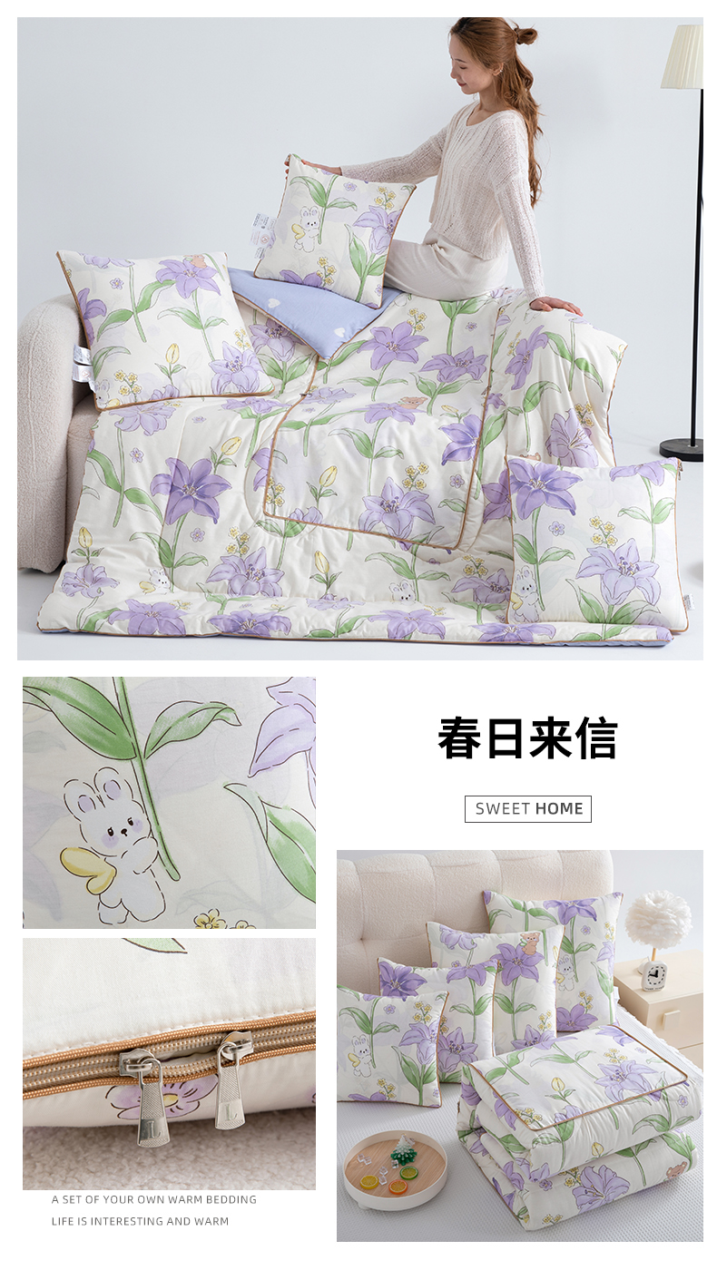 (总)照世家纺 2025新款全棉印花抗菌棉抱枕被