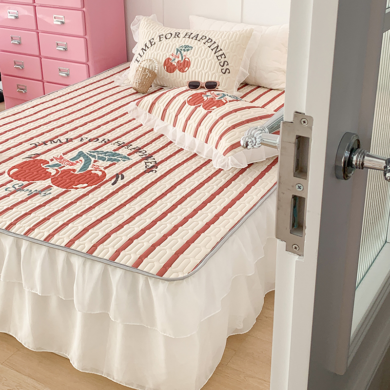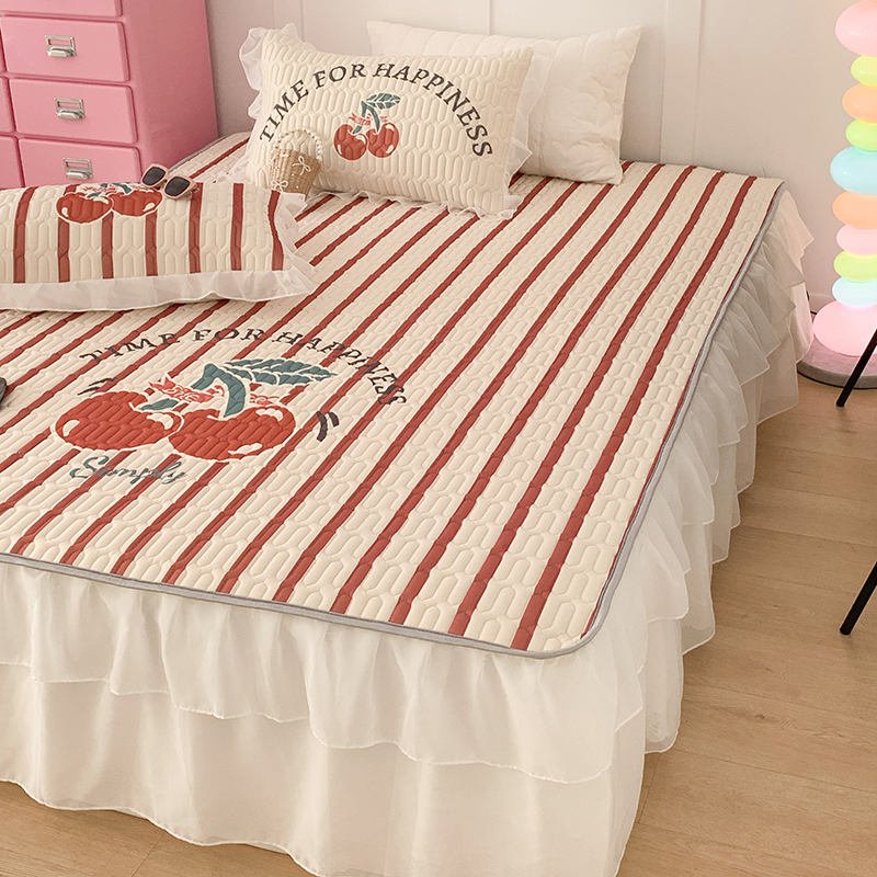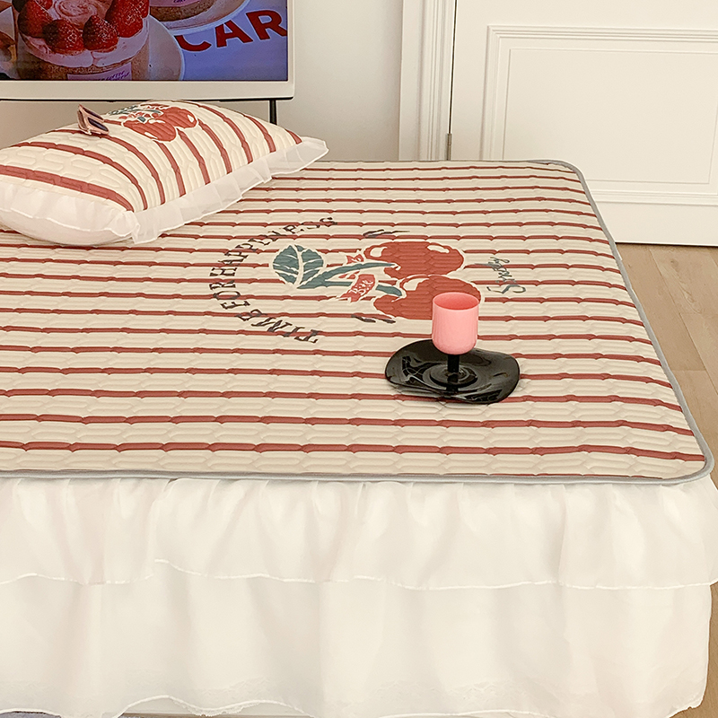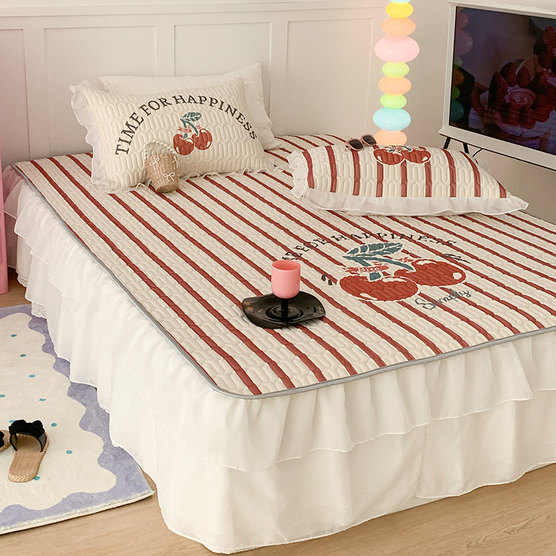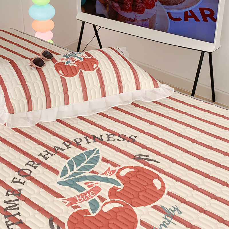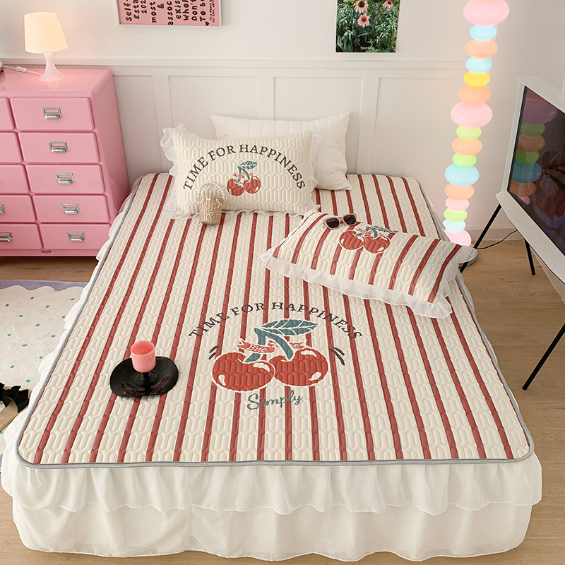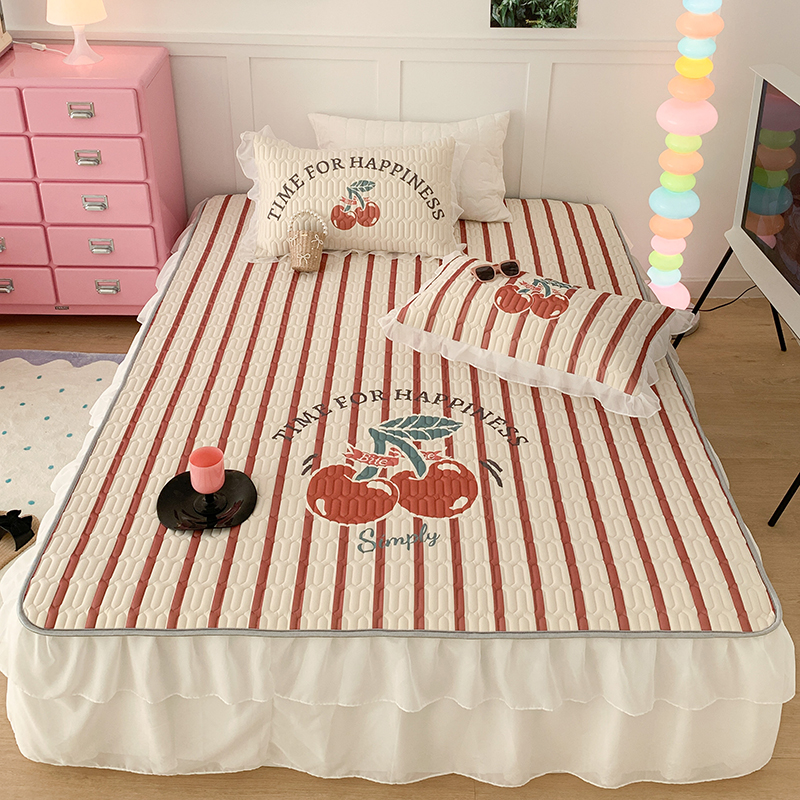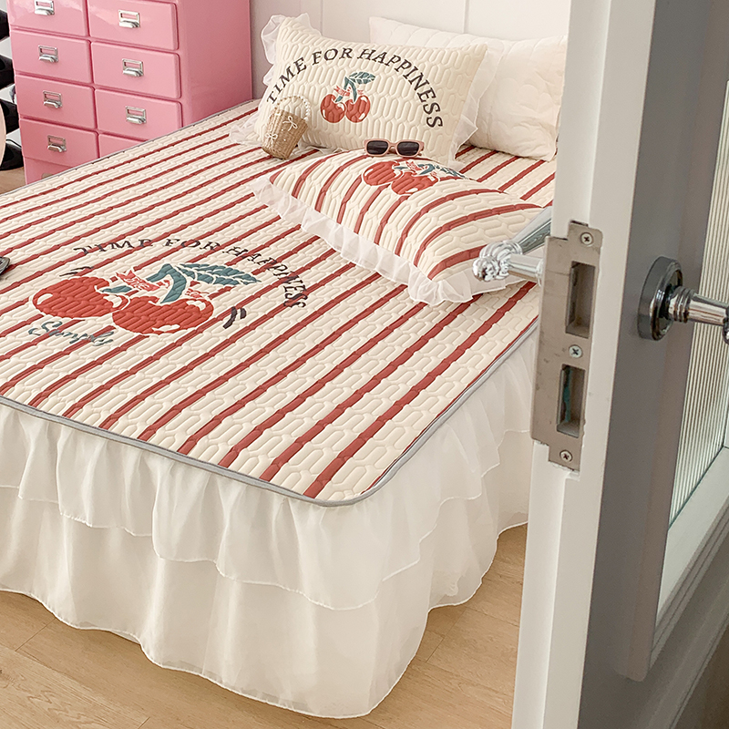 昔可家纺 2024新款床裙款乳胶席 竖条樱桃
