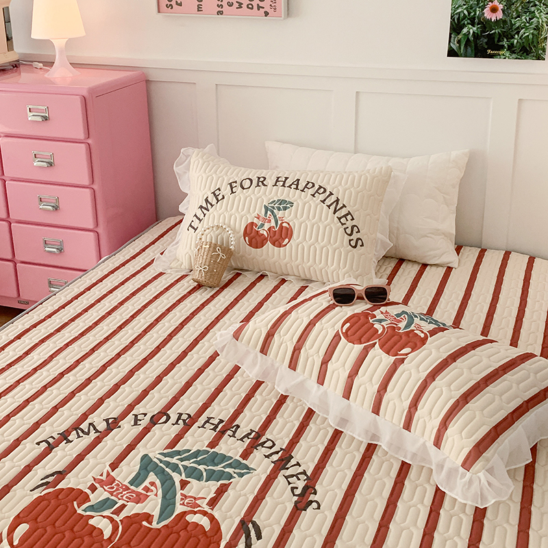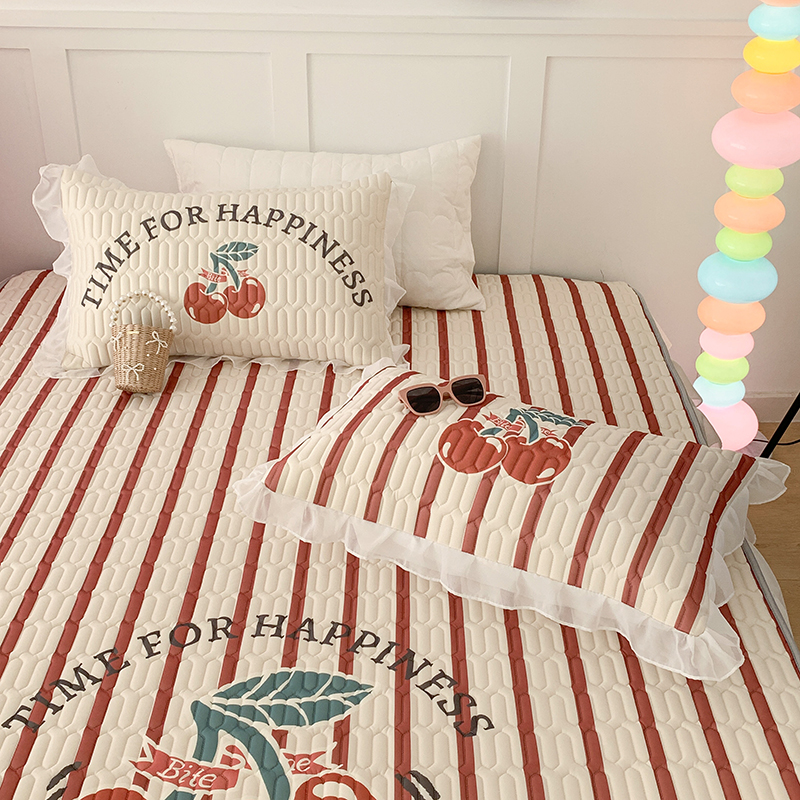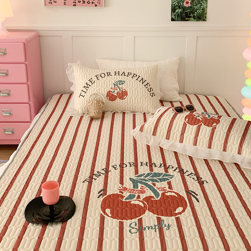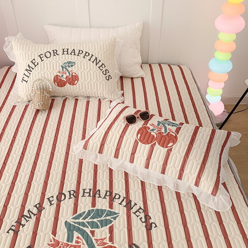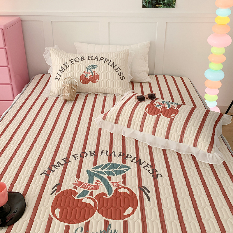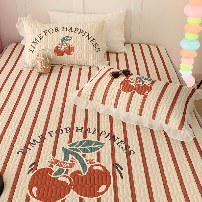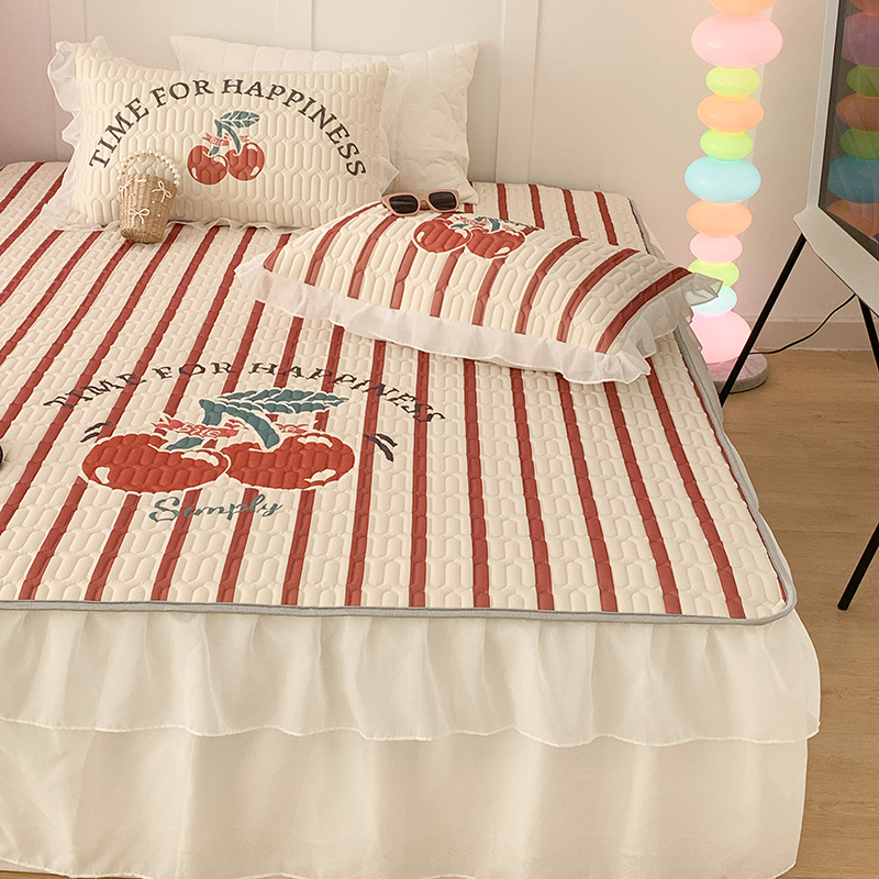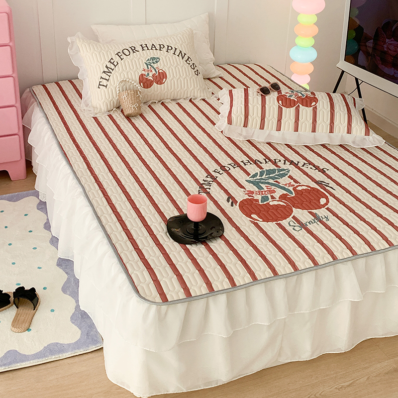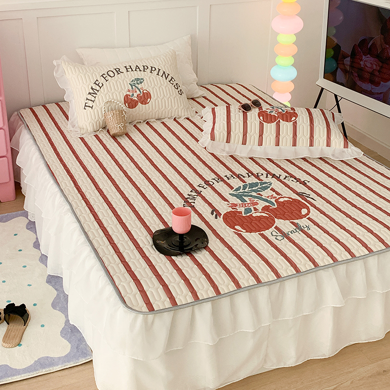 昔可家纺 2024新款床裙款乳胶席 竖条樱桃